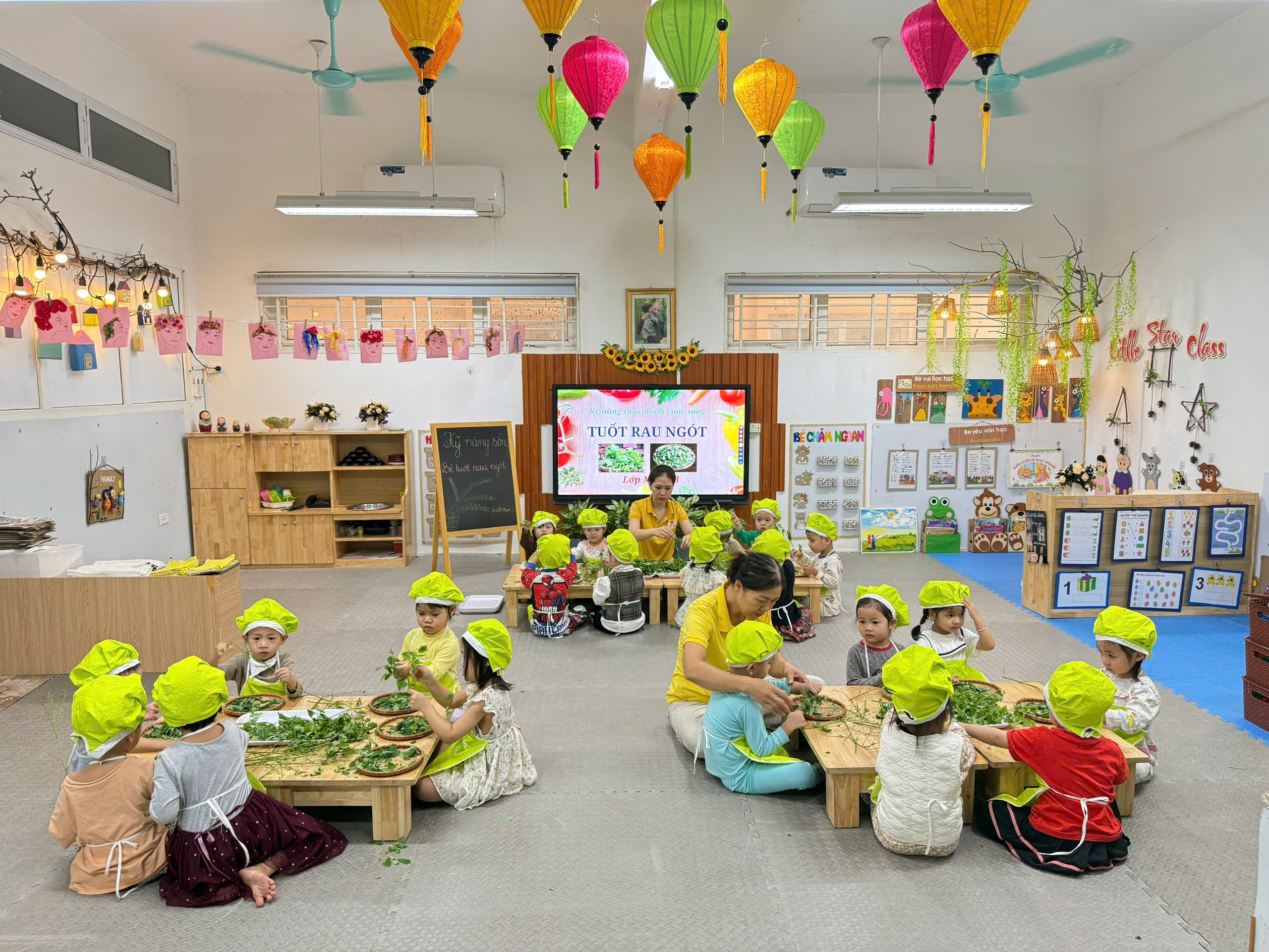 💬 Hoạt động “Bé tuốt rau ngót” là minh chứng cho việc mỗi bài học không nhất thiết phải qua sách vở, mà có thể bắt đầu từ những việc giản dị, gần gũi trong cuộc sống hàng ngày, giúp trẻ “học mà chơi – chơi mà học” thật tự nhiên và đầy hứng khởi!