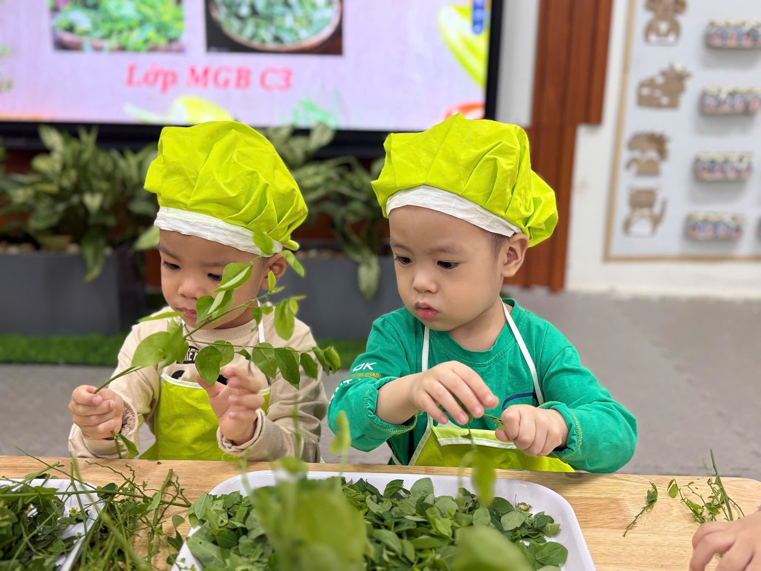 Nhìn những gương mặt rạng rỡ, đôi tay bé nhỏ thoăn thoắt tuốt từng lá rau, cô giáo và cha mẹ đều cảm thấy thật ấm lòng ❤️