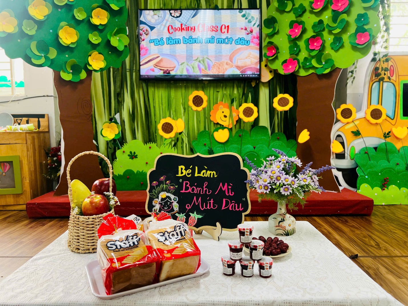 Không khí lớp học trở nên rộn ràng hơn bao giờ hết khi các “đầu bếp nhí” cùng nhau khoe thành quả của mình. Những lát bánh mì mứt dâu thơm ngon đã được hoàn thành với biết bao niềm vui và tiếng cười. 😄