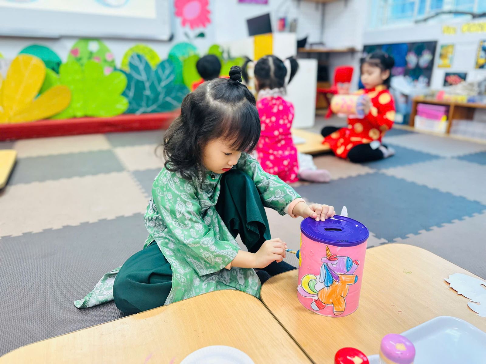 Bên cạnh đó, hoạt động làm hộp đựng tiết kiệm đã mang đến cơ hội cho trẻ rèn luyện sự khéo léo, phát huy khả năng sáng tạo từ những nguyên vật liệu đơn giản. Qua hoạt động này, trẻ được giáo dục ý thức tiết kiệm, biết trân trọng những điều nhỏ bé trong cuộc sống.