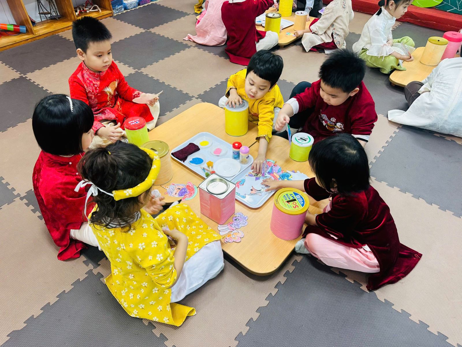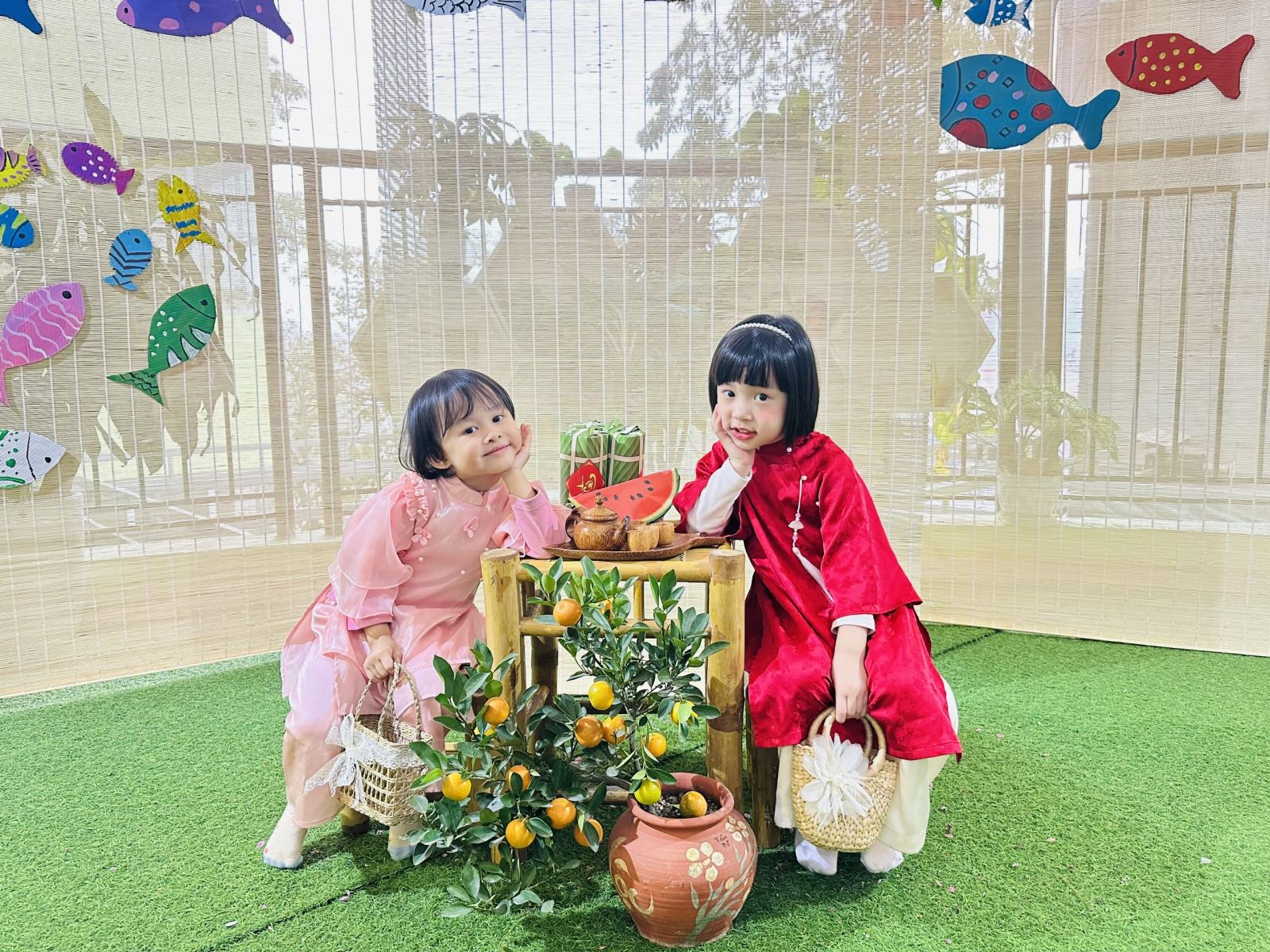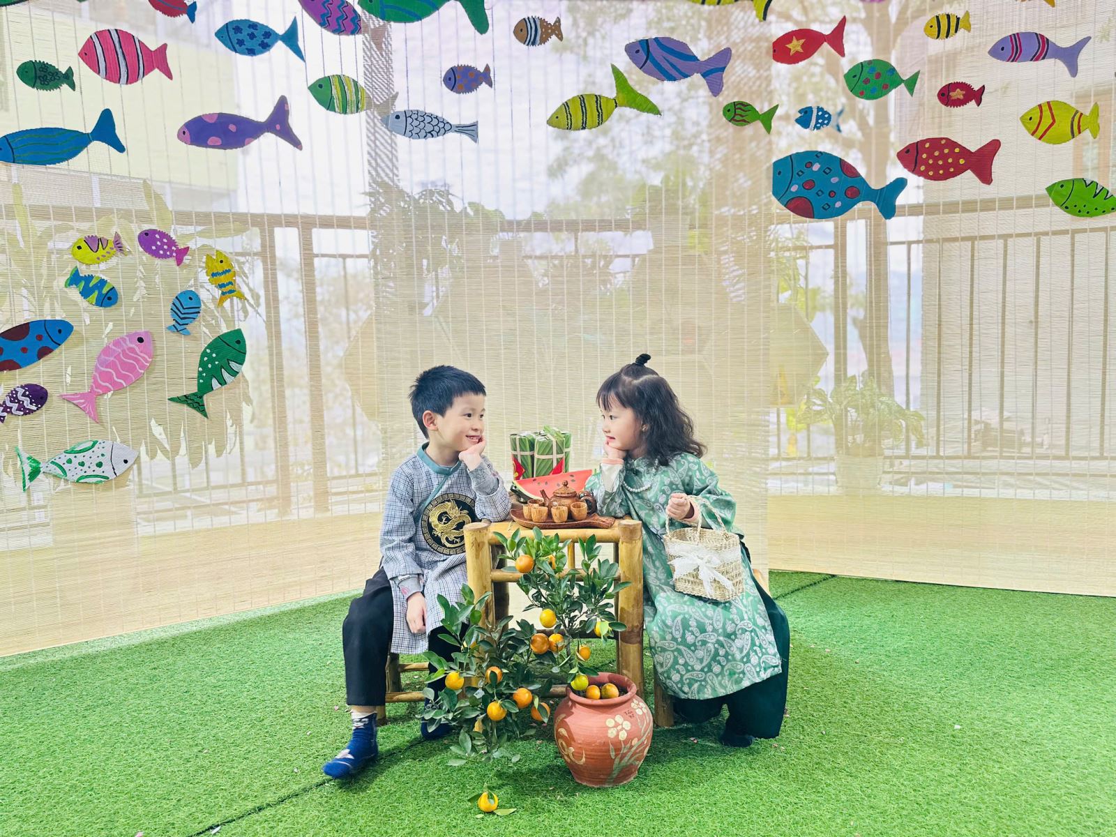 Không khí xuân thêm rộn ràng với Hoạt động chụp ảnh nghệ thuật trong không gian trang trí đậm sắc Tết. Các bé diện trang phục truyền thống, tự tin tạo dáng bên cành đào, câu đối đỏ, lưu giữ những khoảnh khắc hồn nhiên và đáng nhớ.