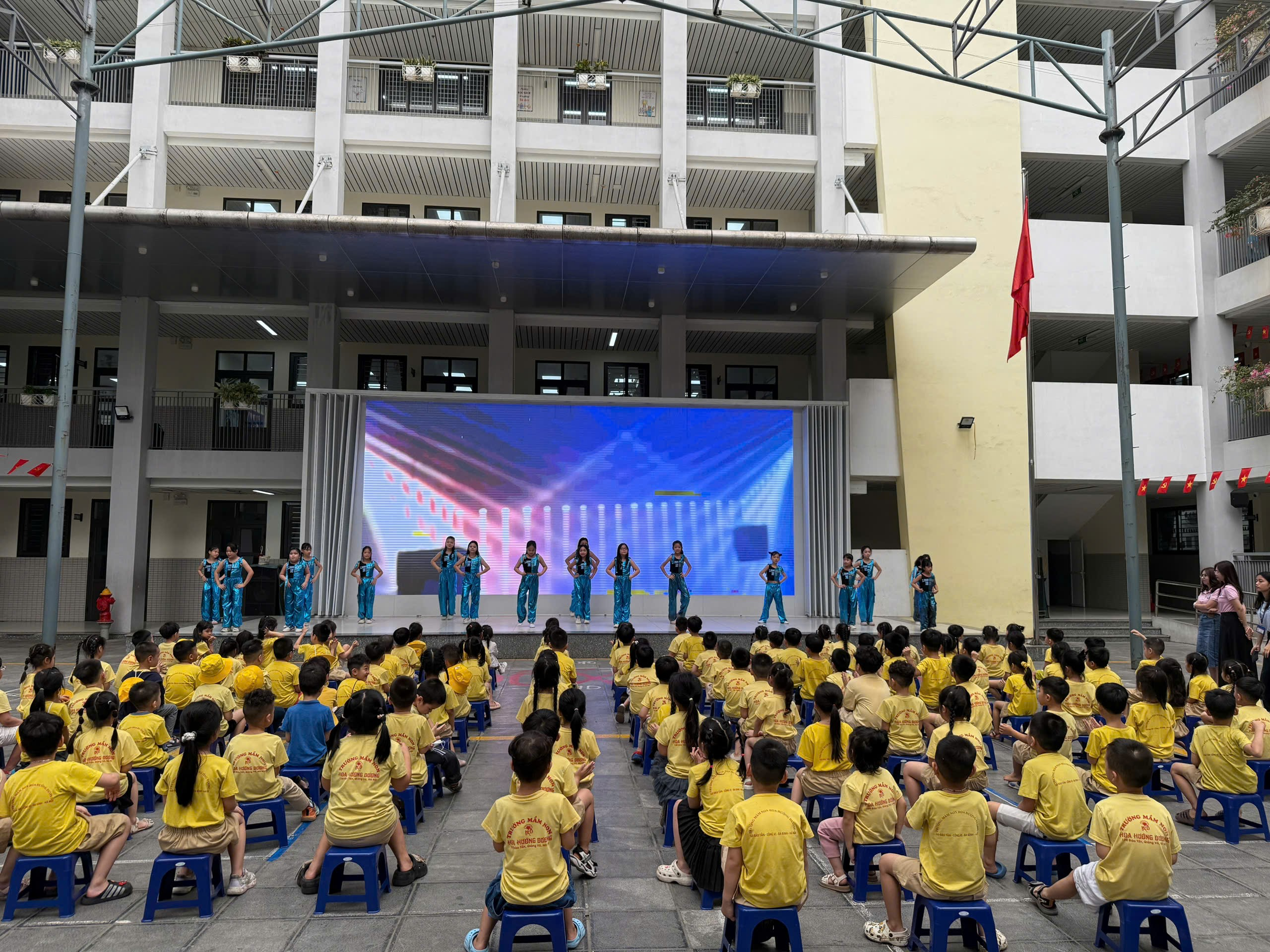 Tiếp nối là màn biểu diễn nhảy hiện đại “Chocolate” đáng yêu, tự tin của các bé mầm non, nhận được sự cổ vũ nhiệt tình từ thầy cô và các anh chị.
