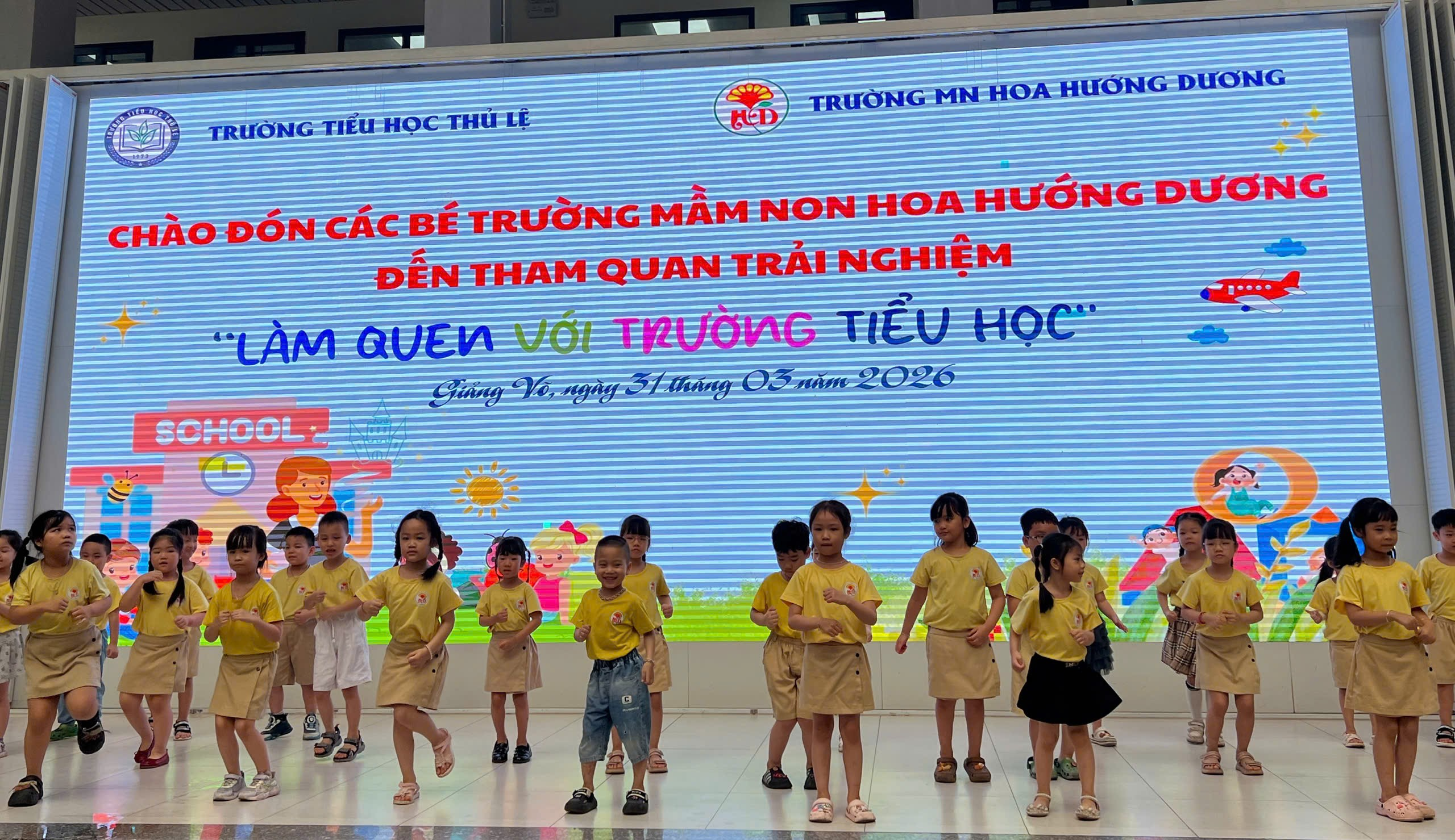 Các bé lớp Mẫu giáo lớn trường Mầm non Hoa Hướng Dương đã có cơ hội sang tham quan và trải nghiệm tại trường Tiểu học Thủ Lệ trong hoạt động “Một ngày làm học sinh lớp 1” vô cùng ý nghĩa và thú vị. Các con đã được các cô giáo trường Tiểu học Thủ Lệ đón tiếp nồng nhiệt, tạo cảm giác thân thiện, gần gũi và đầy hào hứng