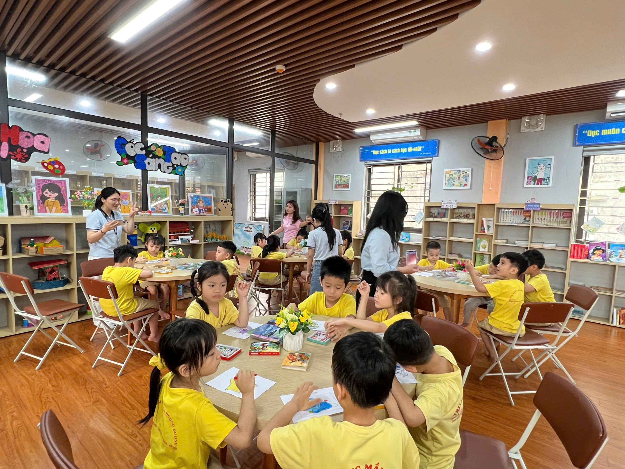 Bên cạnh đó, các bé còn được khám phá các phòng chức năng hiện đại như phòng thư viện, mỹ thuật, âm nhạc tiếng anh... Mỗi không gian đều mang đến cho các con những trải nghiệm mới mẻ, giúp các bé thêm hào hứng và tự tin khi chuẩn bị bước vào lớp 1.