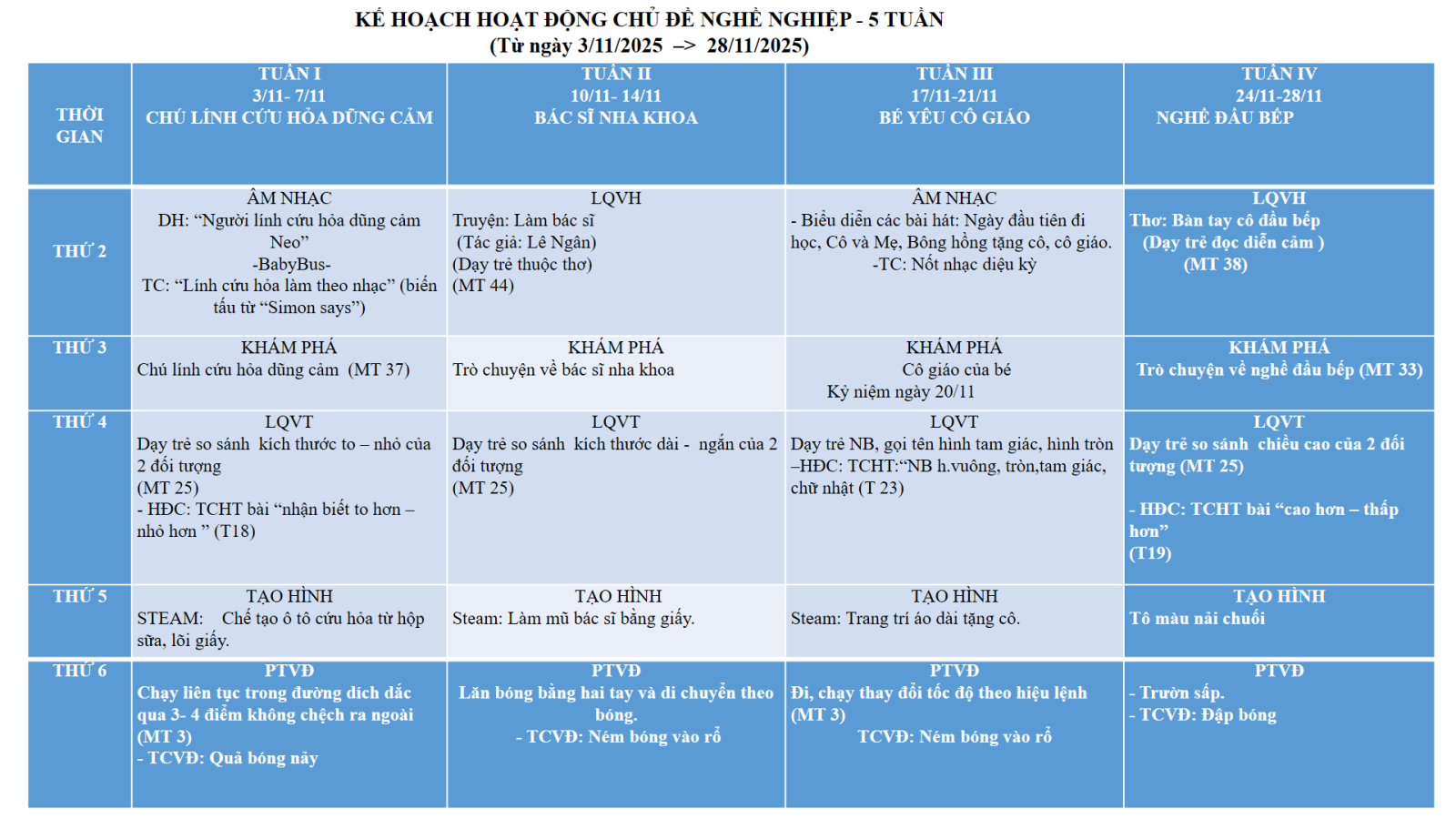 Kế hoạch hoạt động giáo dục tháng 11/2025 - Lớp MGN B1