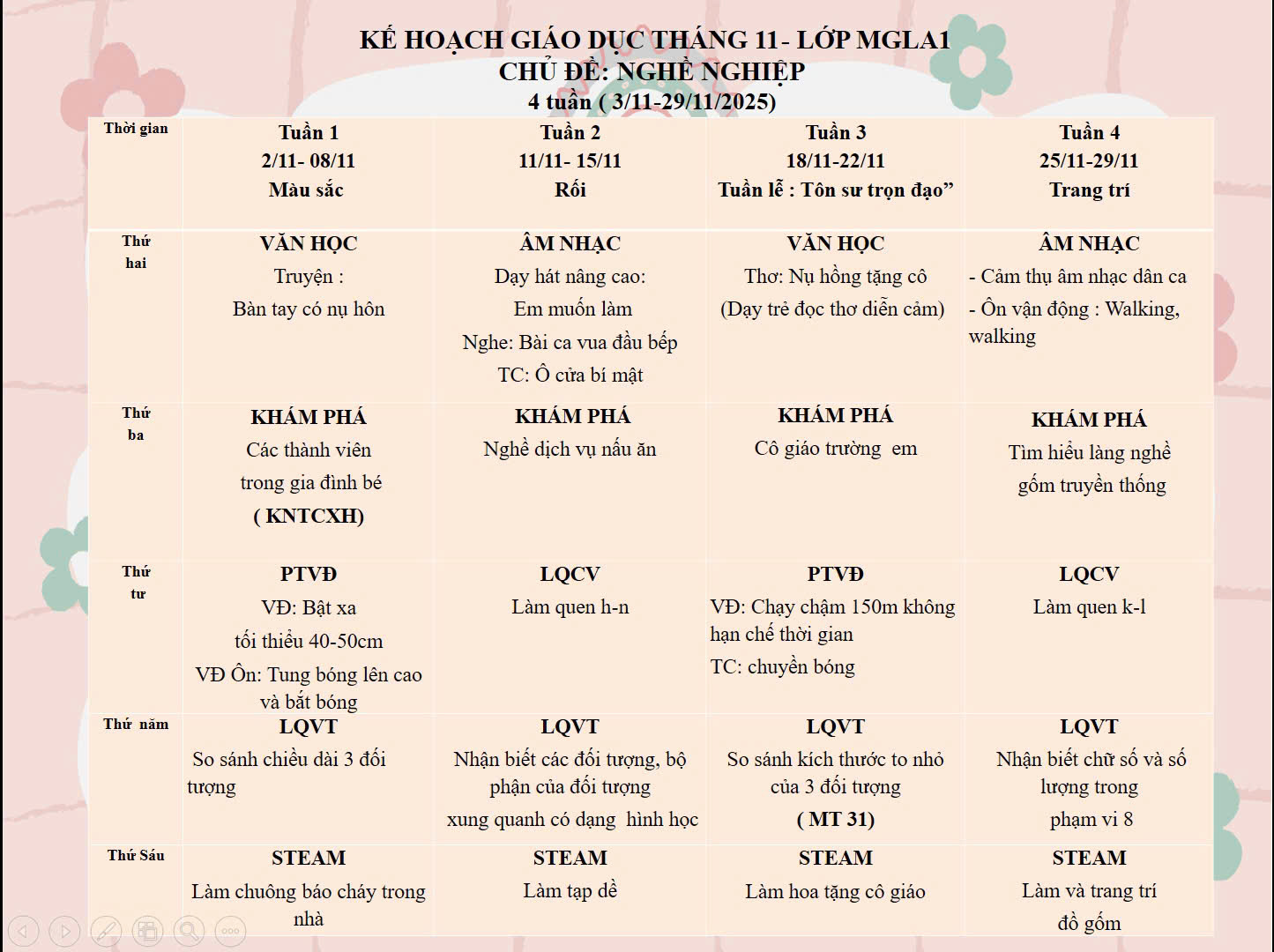 Kế hoạch giáo dục tháng 11 lớp MGL A1