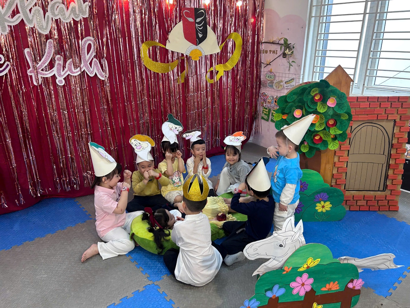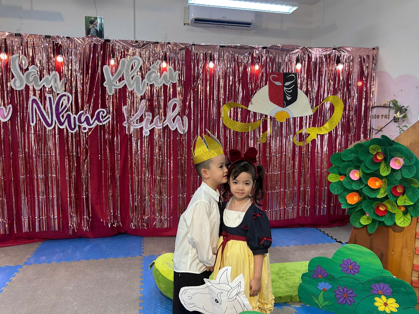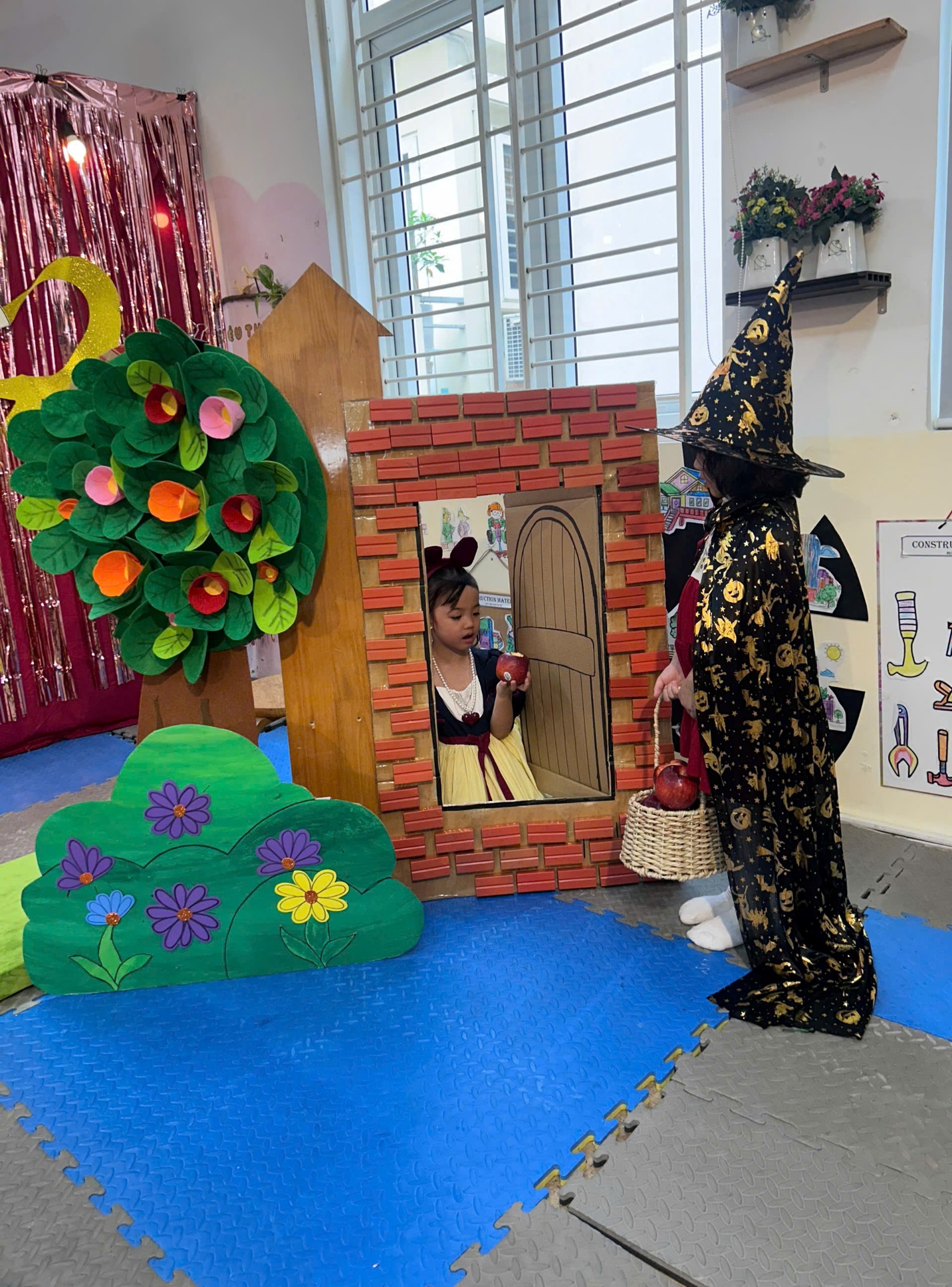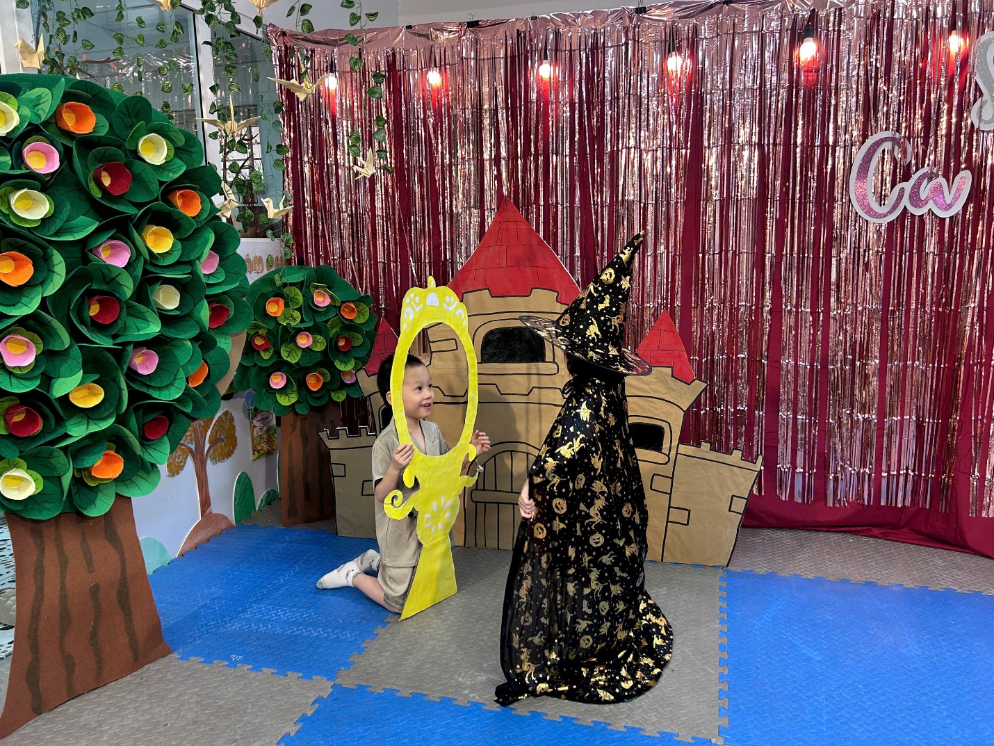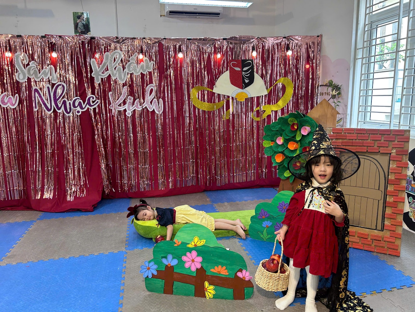 Với sự chuẩn bị chu đáo từ cô và trò, cùng sự phối hợp nhiệt tình của quý phụ huynh, buổi biểu diễn đã diễn ra đầy màu sắc và cảm xúc. Các bé hóa thân thành những nhân vật quen thuộc trong câu chuyện cổ tích: nàng Bạch Tuyết dịu dàng, bảy chú lùn đáng yêu, hoàng tử dũng cảm và cả mụ phù thủy bí ẩn.