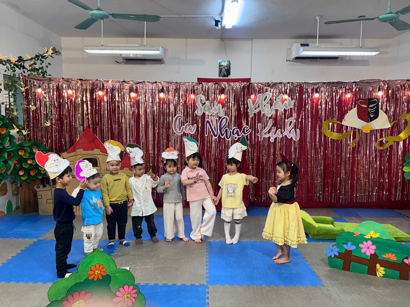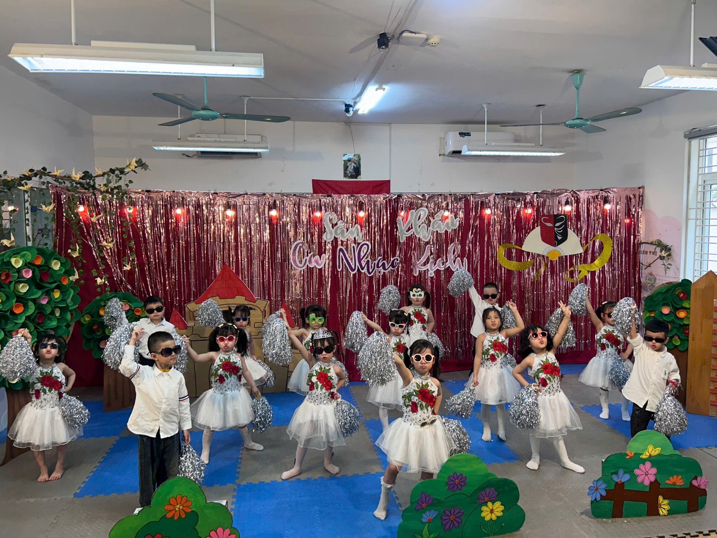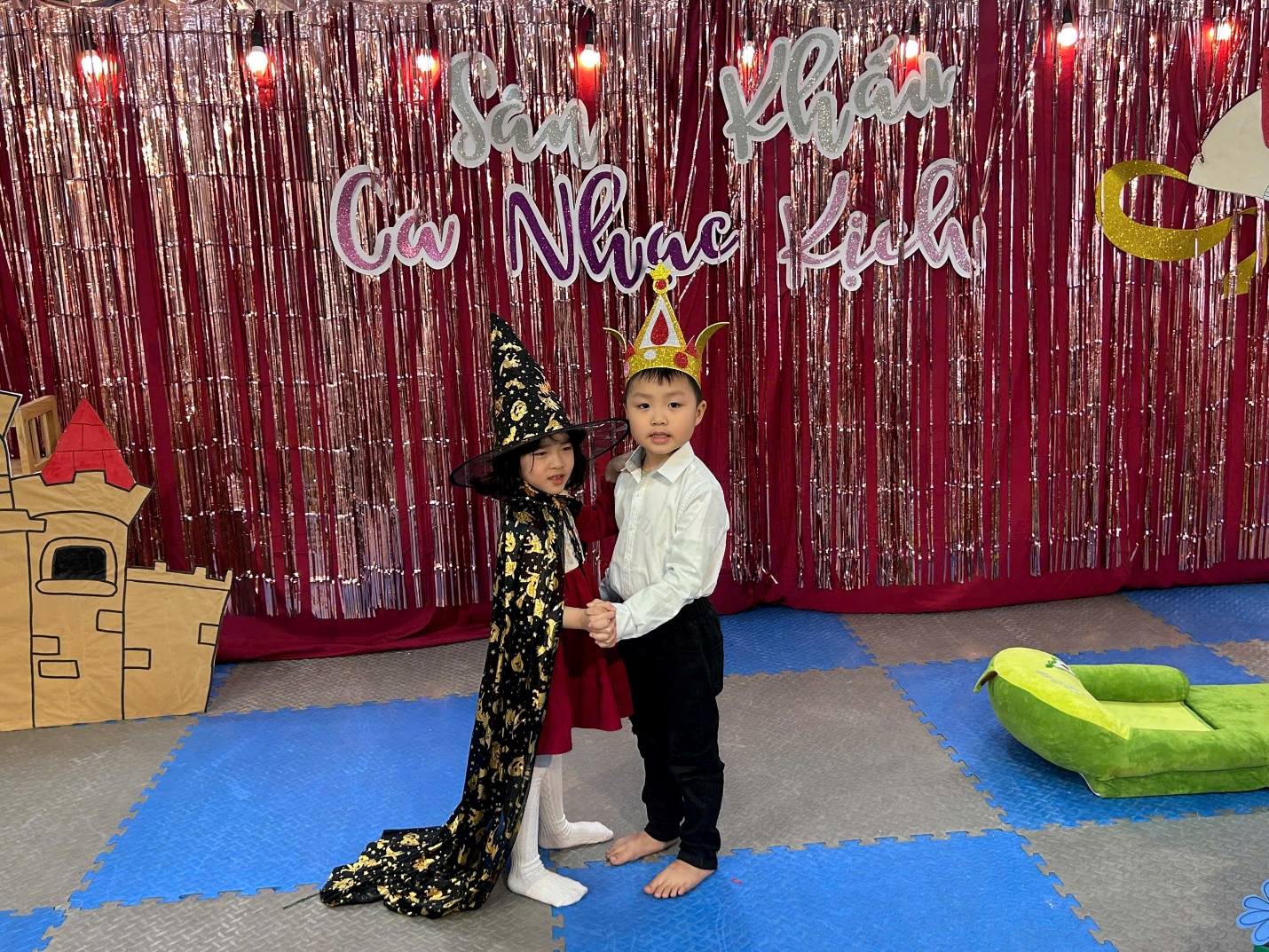 Không chỉ dừng lại ở việc diễn xuất, các con còn thể hiện sự tự tin qua từng lời thoại, điệu nhảy và nét biểu cảm hồn nhiên. Đặc biệt, sự tham gia của phụ huynh trong vai trò hỗ trợ chuẩn bị trang phục, đạo cụ và cổ vũ tinh thần đã góp phần tạo nên một sân khấu tràn ngập yêu thương.