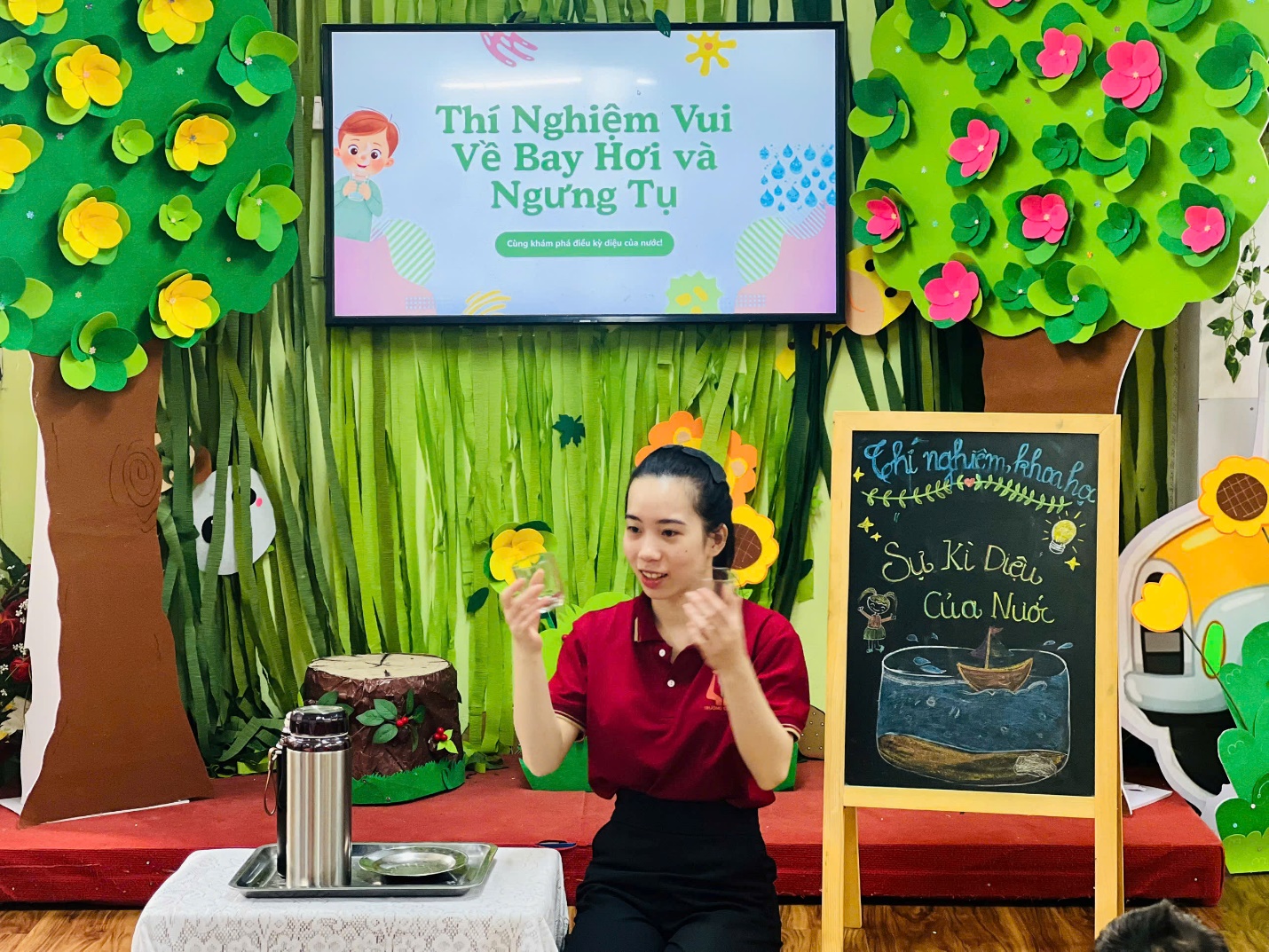 🌈 Đặc biệt, khi xem thí nghiệm nước bốc hơi và ngưng tụ, các con còn “ồ à” thích thú khi hiểu rằng: