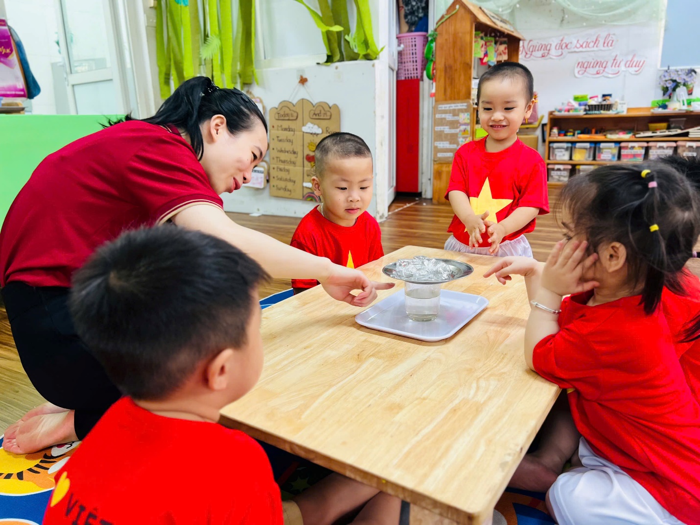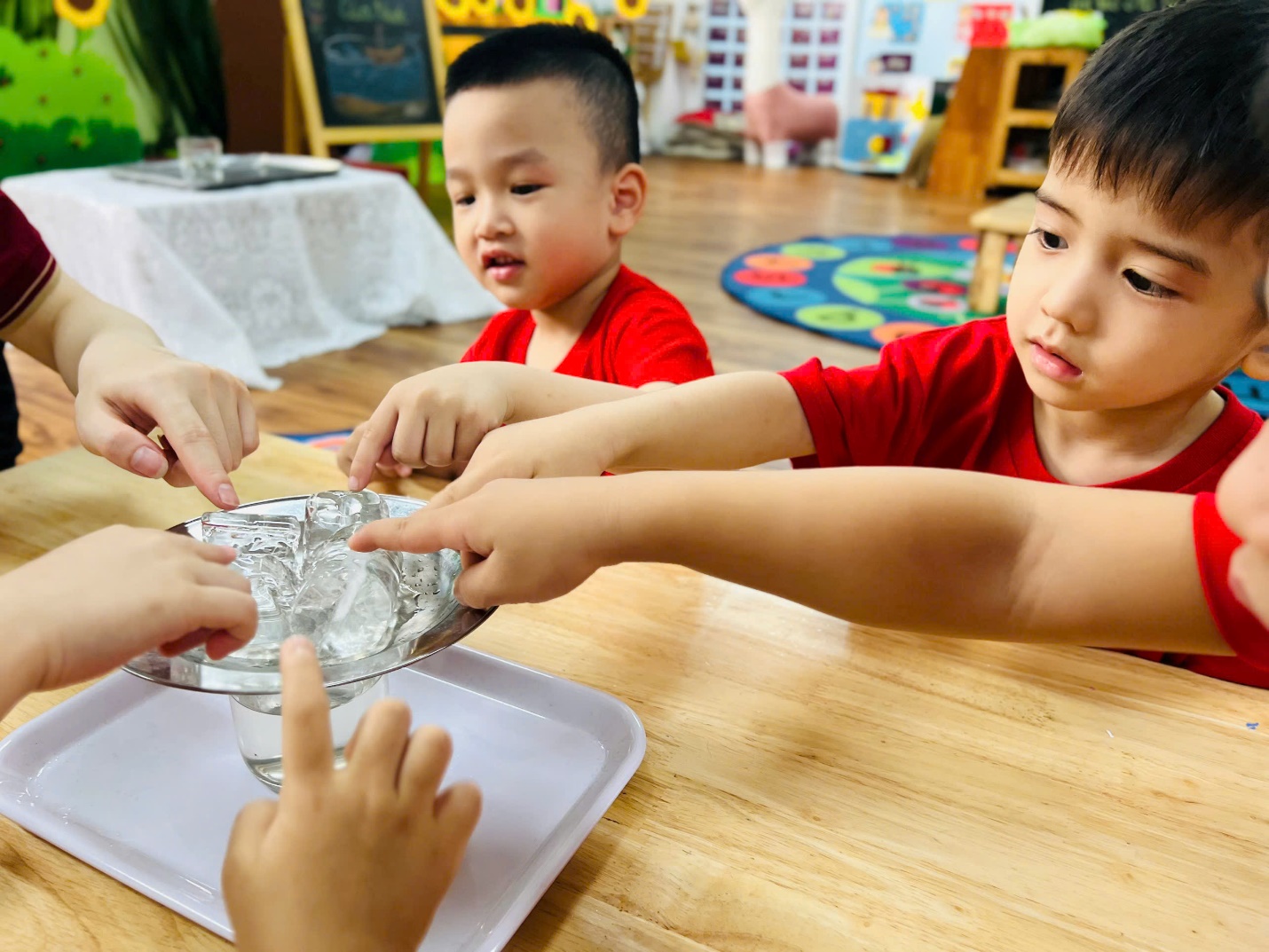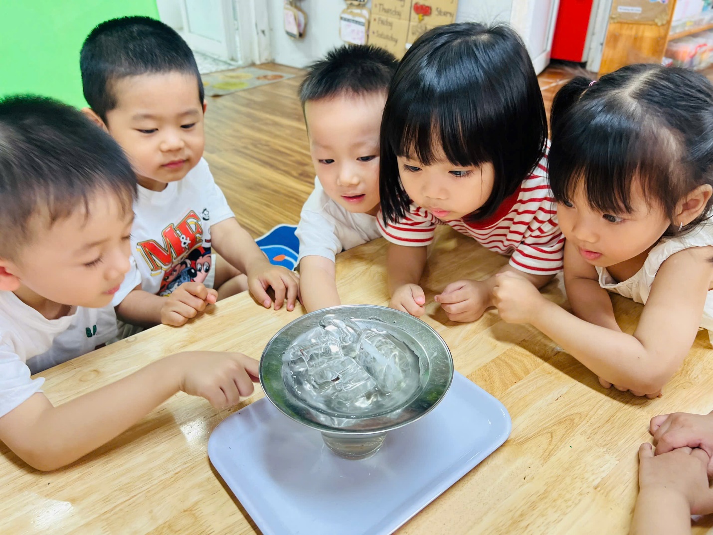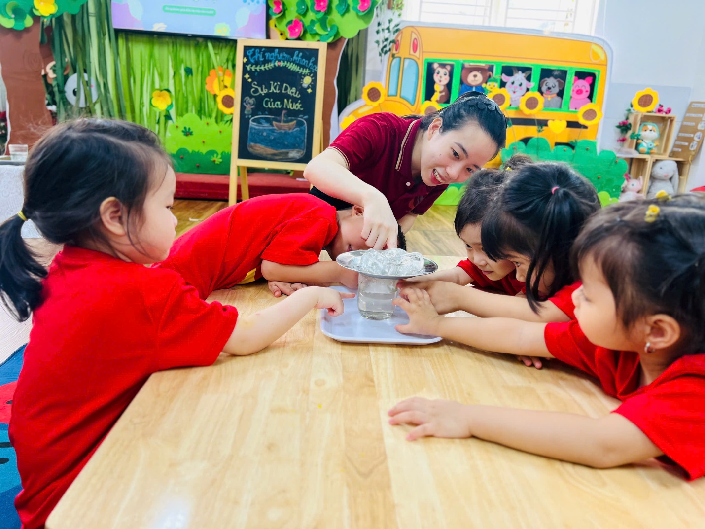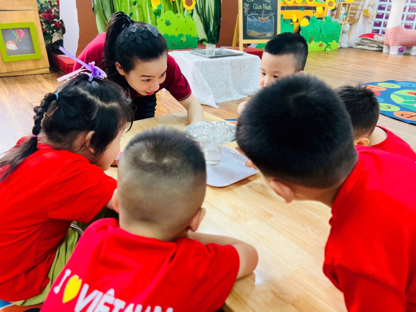 Những đôi mắt tròn xoe, những bàn tay nhỏ xinh thoăn thoắt làm thí nghiệm… tất cả đã tạo nên một không khí học tập thật sinh động và đáng yêu.