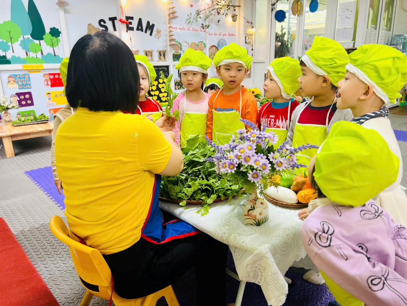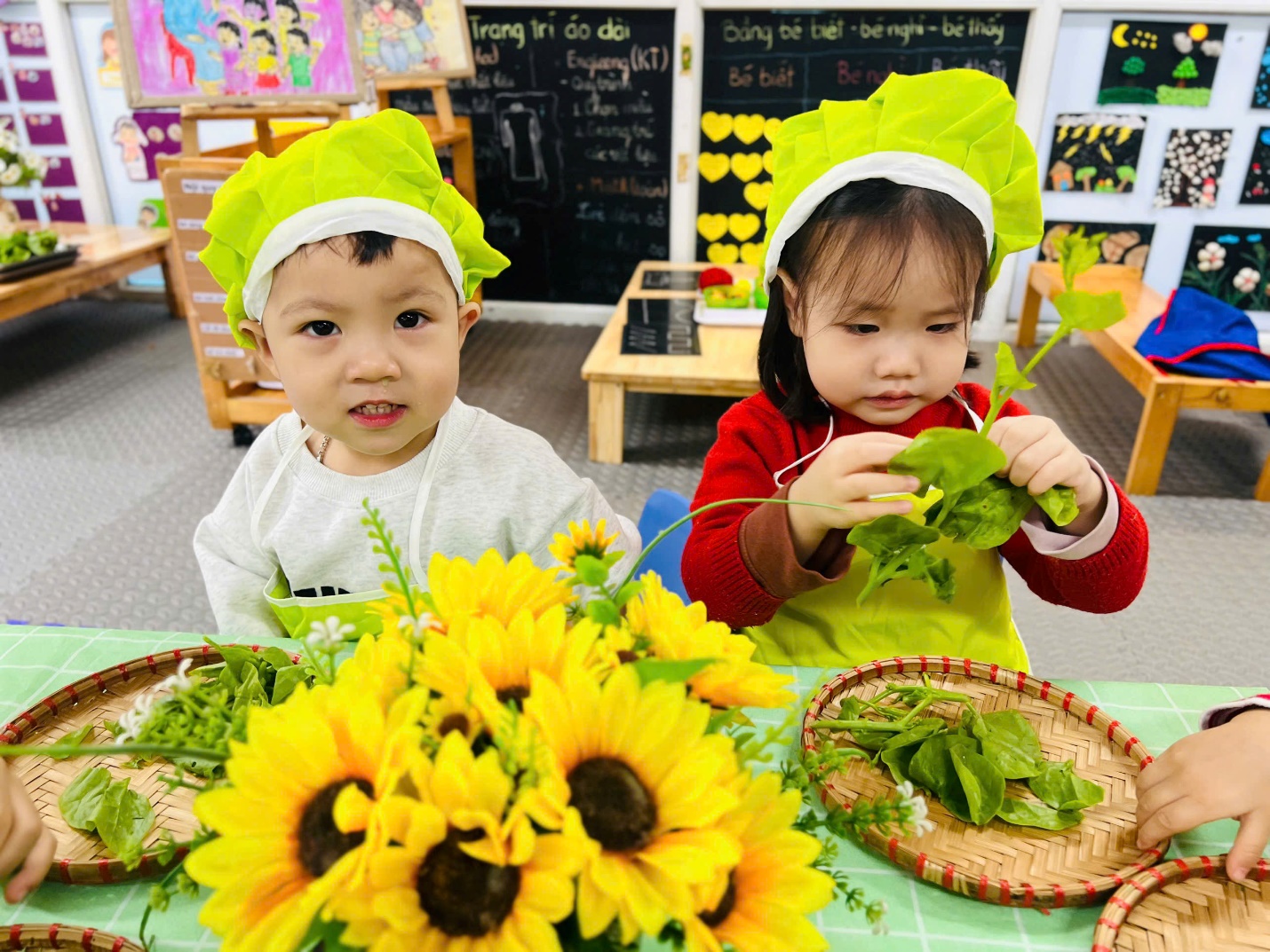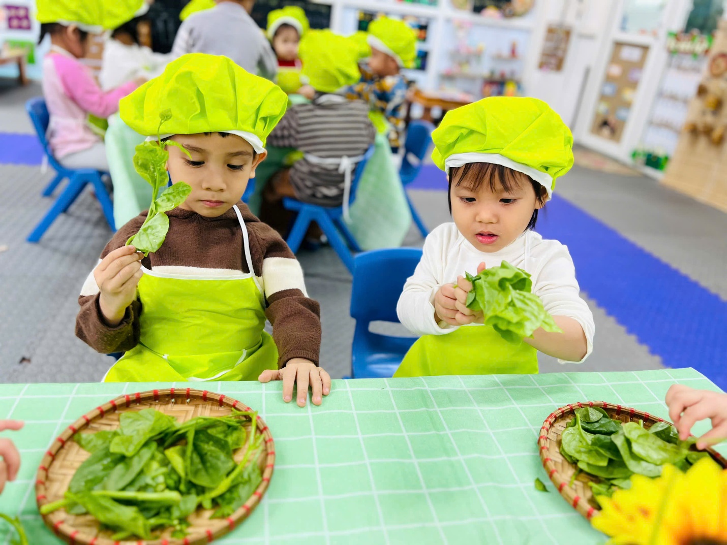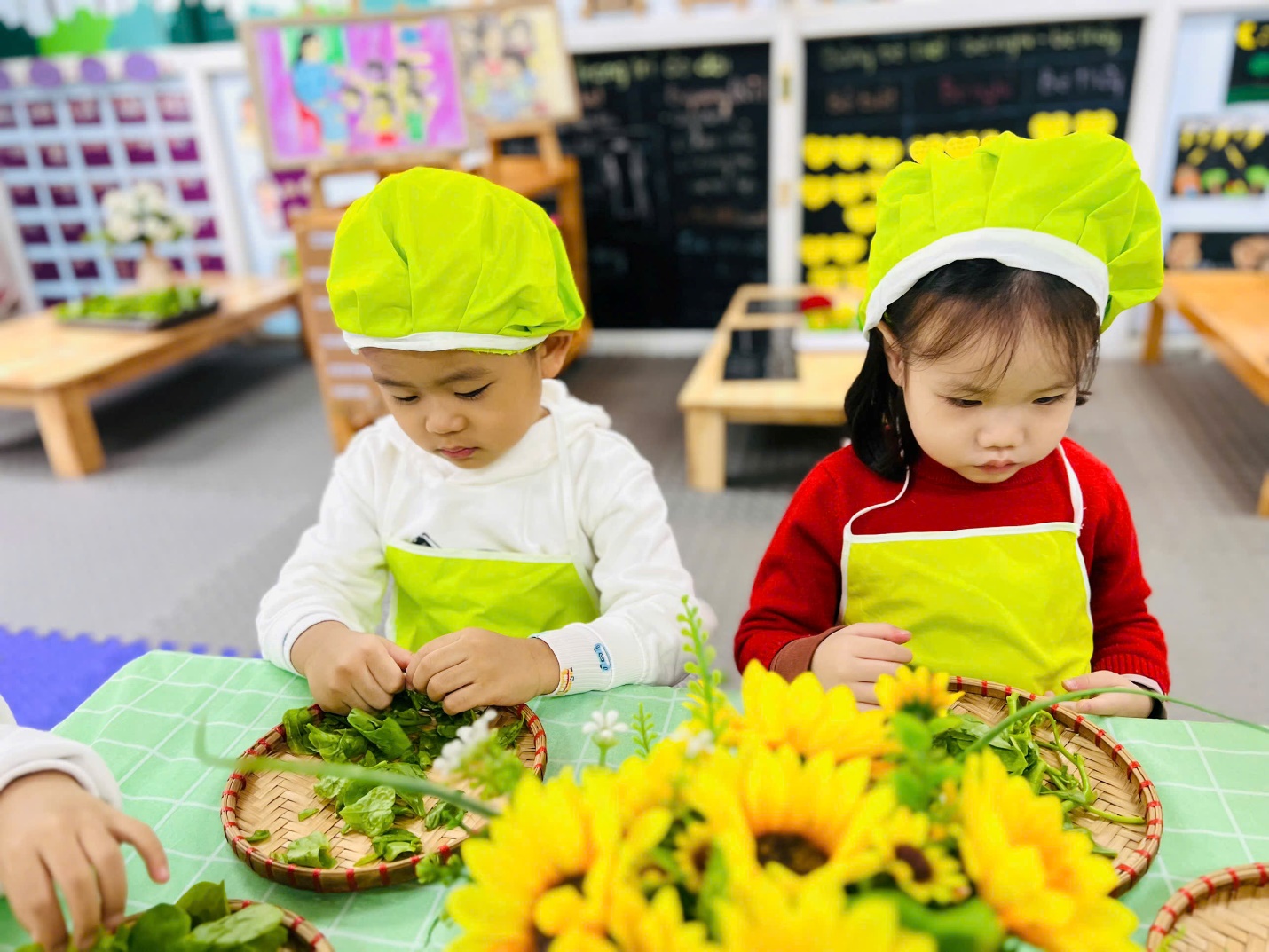 Thông qua hoạt động nhỏ bé này, các con không chỉ được rèn luyện sự khéo léo của bàn tay, khả năng phối hợp tay – mắt mà còn hình thành kỹ năng sống quan trọng: biết phụ giúp việc nhà, biết giữ gìn thực phẩm sạch sẽ, gọn gàng. Các bé cũng học được cách chờ đến lượt, chia sẻ rau với bạn, cùng nhau hoàn thành công việc trong bầu không khí vui vẻ và đoàn kết.