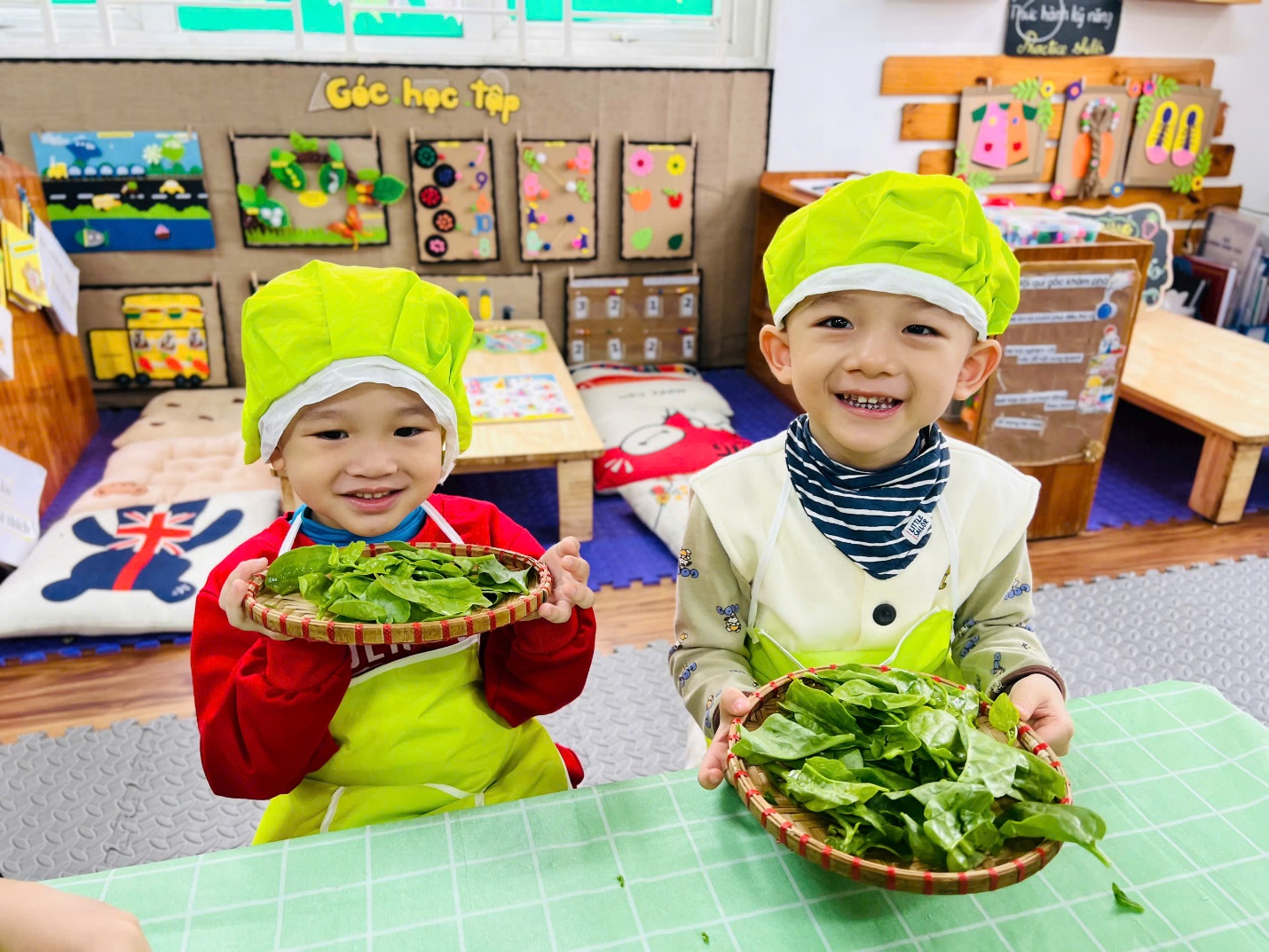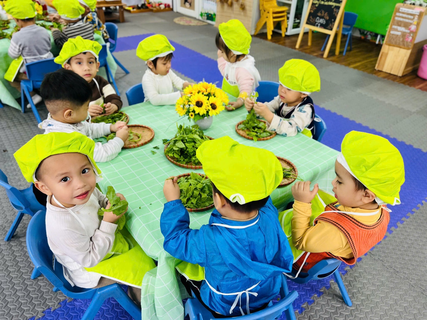 Điều đáng yêu nhất chính là niềm vui hiện rõ trên từng gương mặt. Sau giờ học, các bé hào hứng khoe thành quả của mình, ánh mắt long lanh vì đã “làm được việc của người lớn”. Những cọng rau mồng tơi xanh mướt không chỉ là sản phẩm của giờ học mà còn là kết quả của sự cố gắng, tập trung và niềm tự hào nho nhỏ của các con.
