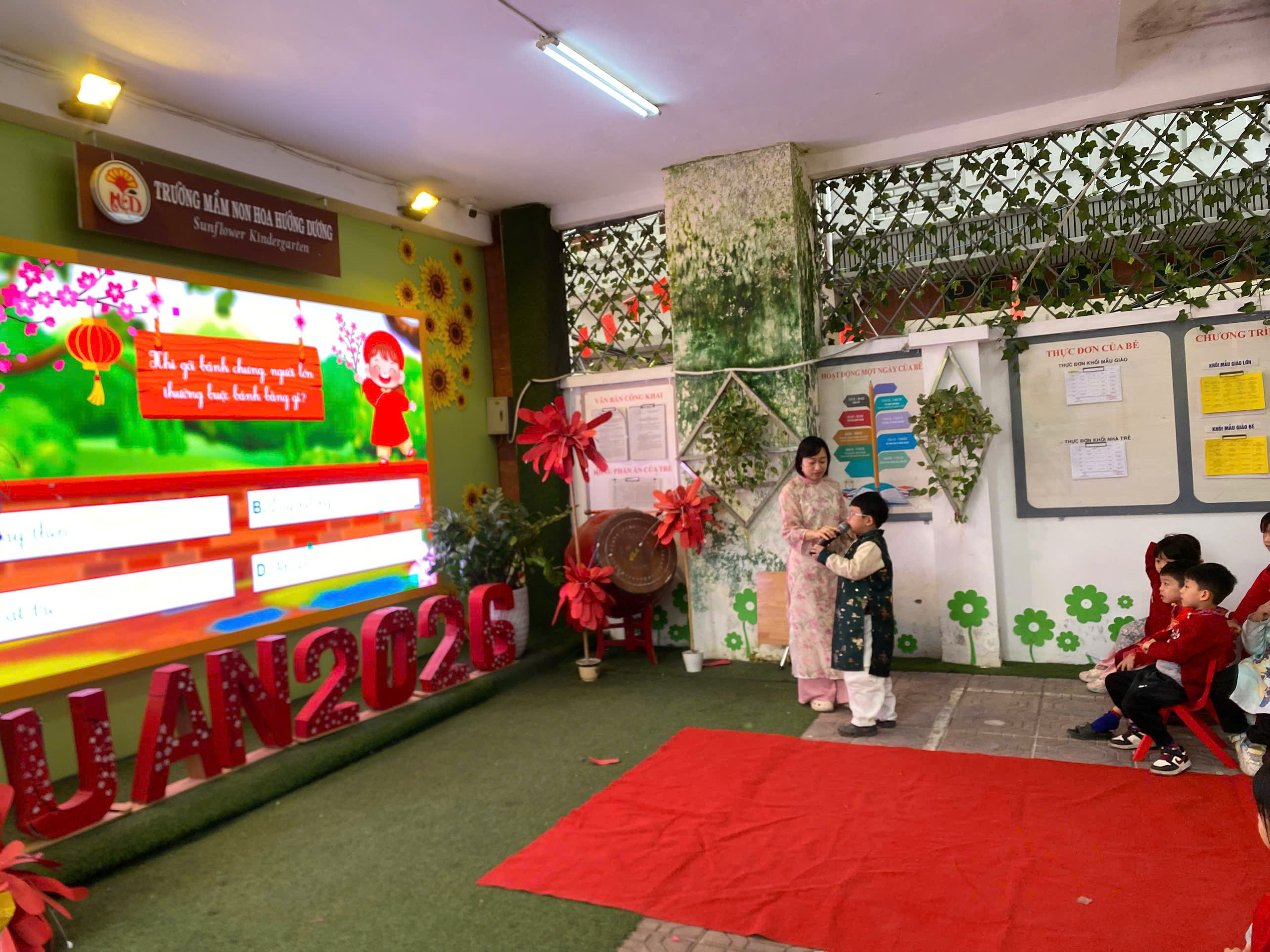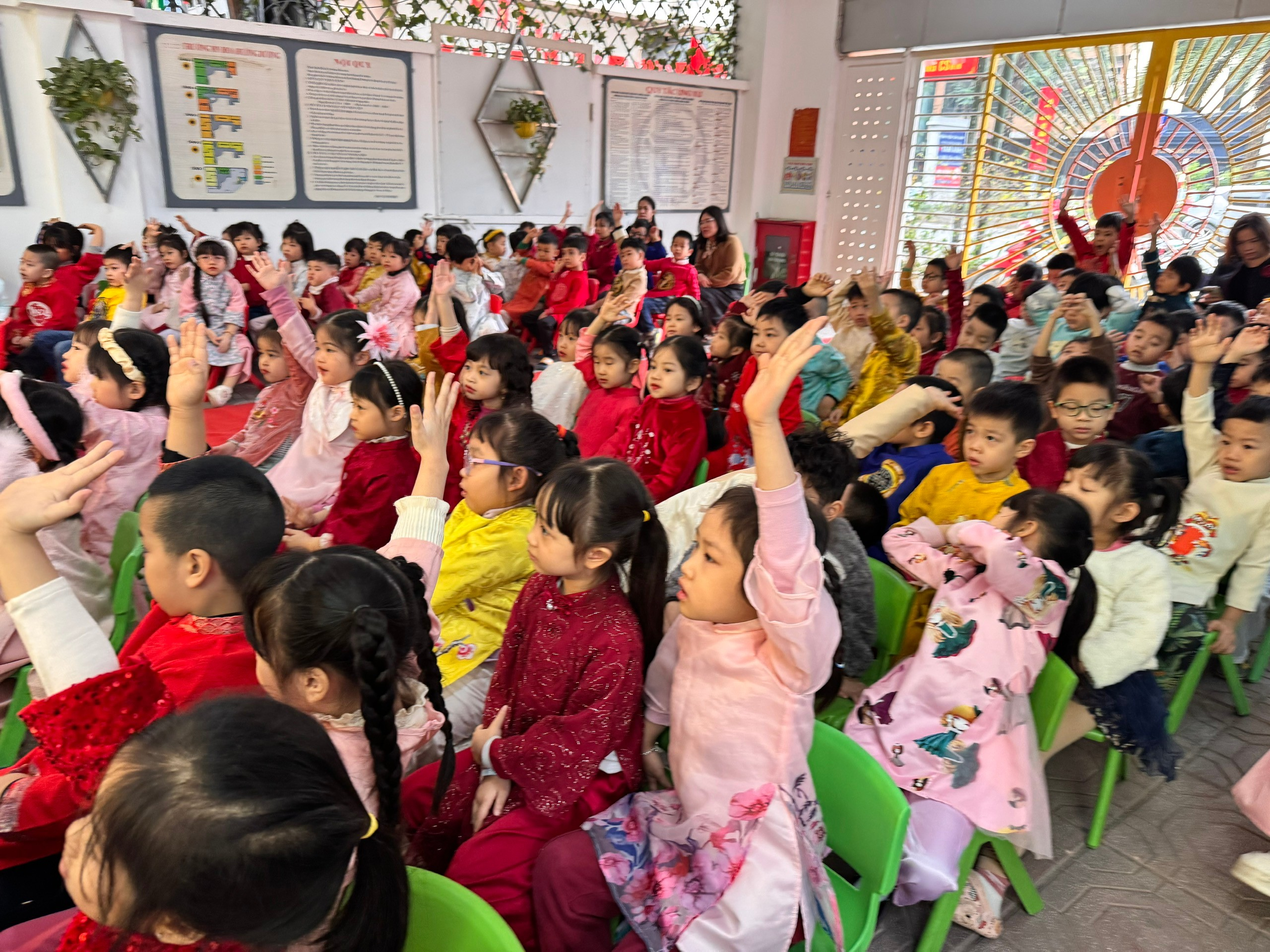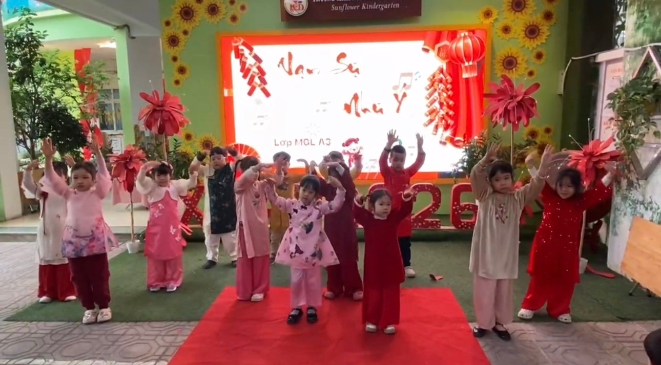 Không khí xuân càng thêm rộn ràng khi các bé cùng nhau biểu diễn văn nghệ với bài hát “Vạn sự như ý”. Những giai điệu tươi vui, những động tác nhún nhảy đáng yêu đã mang đến sắc xuân ngập tràn, lan tỏa niềm vui và lời chúc tốt đẹp đầu năm.