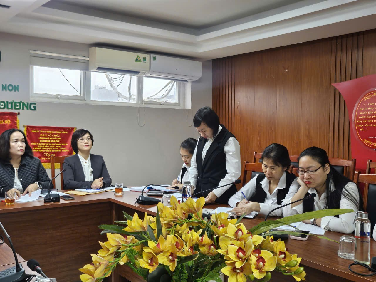 🌿 Phát biểu chỉ đạo tại buổi sinh hoạt, đồng chí Trần Thị Tố Tâm – Chủ tịch MTTQ phường Giảng Võ đã biểu dương tinh thần đoàn kết, trách nhiệm và kết quả đạt được của Chi bộ Trường Mầm non Hoa Hướng Dương trong thời gian qua. Đánh giá cao công tác tổ chức sinh hoạt Chi bộ của nhà trường.