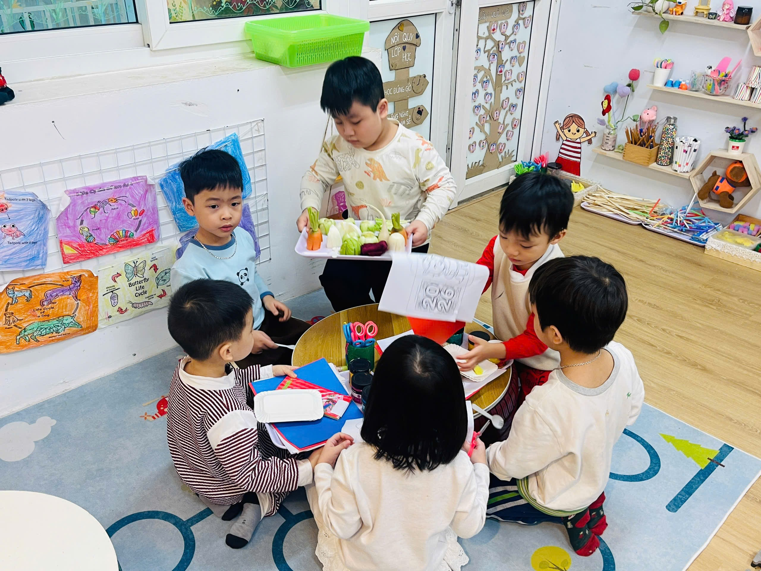 Hoạt động không chỉ mang đến sự mới lạ, hứng thú mà còn giúp trẻ khám phá sự sáng tạo từ những nguyên liệu gần gũi trong cuộc sống hằng ngày. Qua đó, các bé được rèn luyện vận động tinh, khả năng quan sát và tư duy thẩm mỹ một cách tự nhiên.