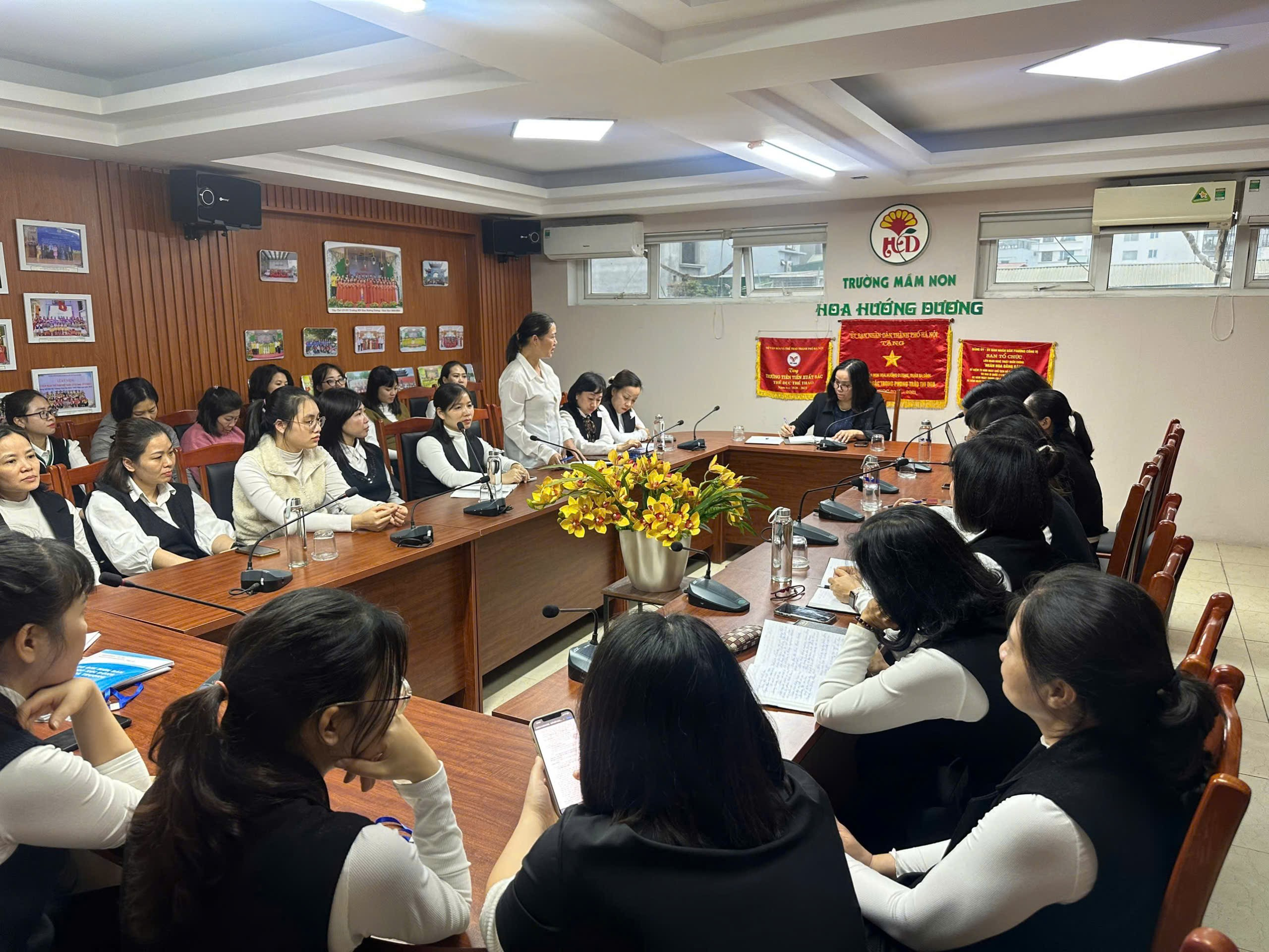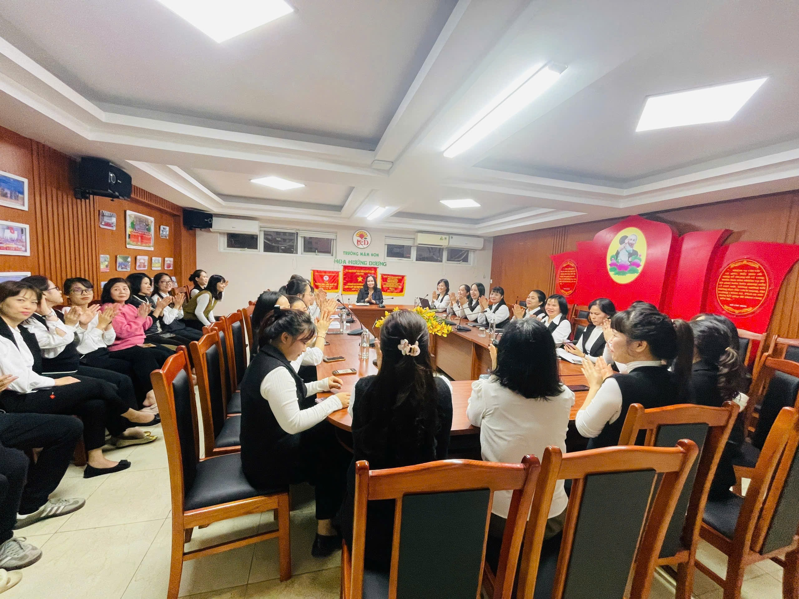 ☘️ Buổi sơ kết là dịp để tập thể Trường Mầm non Hoa Hướng Dương cùng nhau chia sẻ, rút ra những bài học kinh nghiệm quý báu, tạo động lực tiếp tục nỗ lực, phấn đấu hoàn thành tốt hơn nữa nhiệm vụ năm học trong thời gian tới.