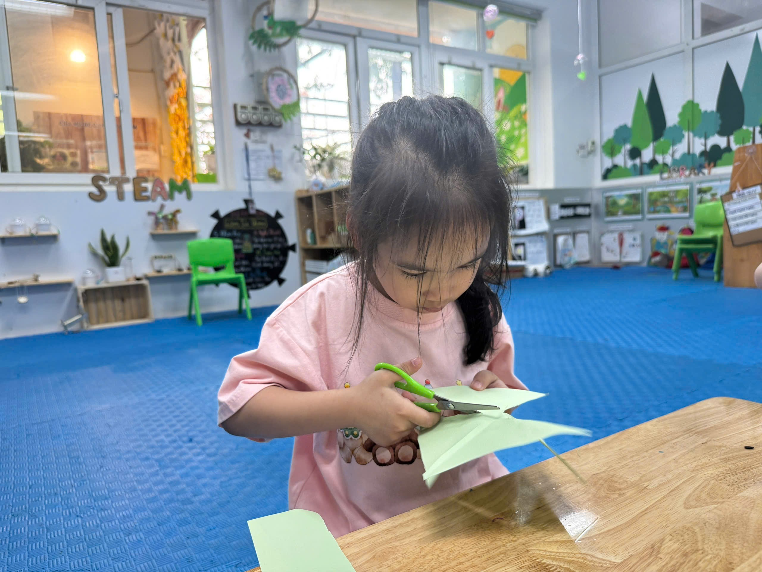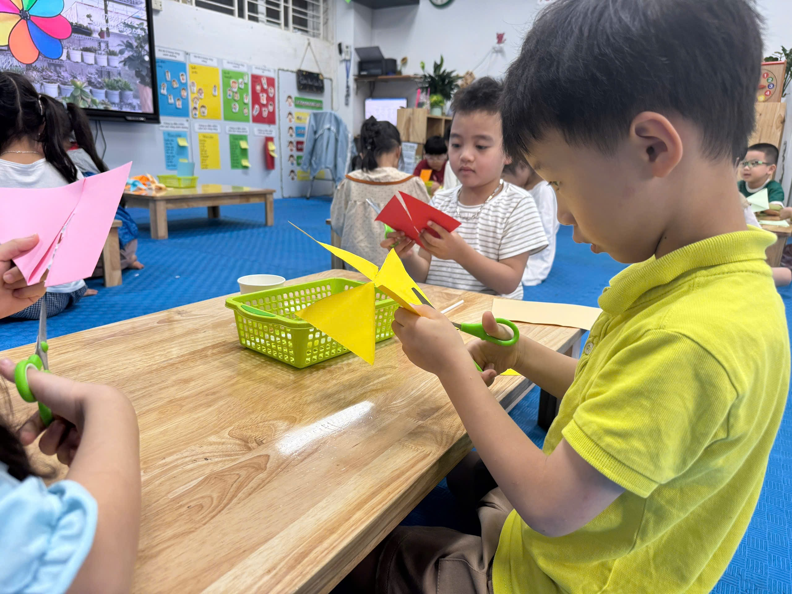 Hoạt động STEAM: Làm chong chóng không chỉ giúp các con rèn luyện sự khéo léo, mà còn khơi dậy trí tò mò và khả năng sáng tạo. Những chiếc chong chóng tuy nhỏ bé nhưng đã mang đến cho các con một trải nghiệm thật ý nghĩa – nơi học mà chơi, chơi mà học.