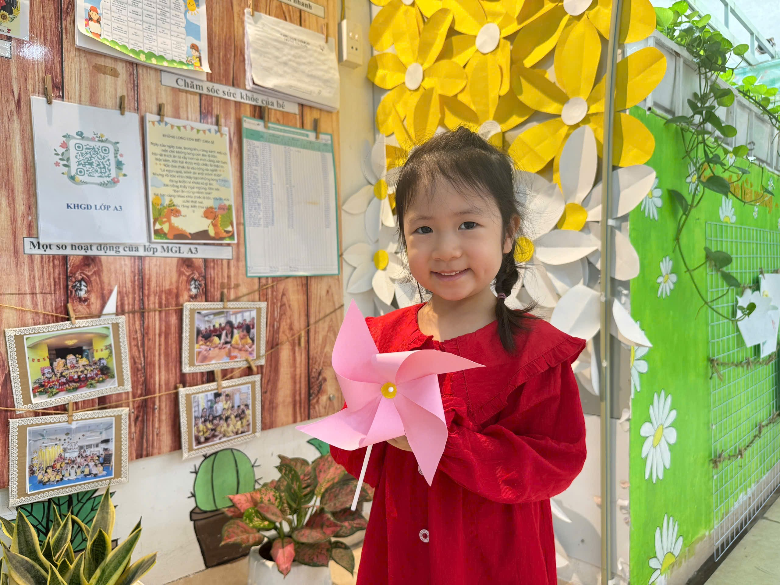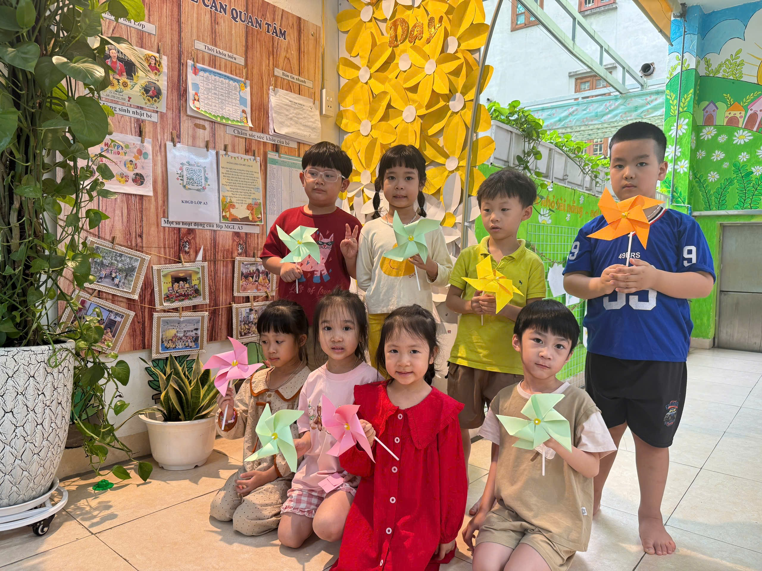Điều đáng quý không chỉ nằm ở sản phẩm hoàn thành, mà còn ở quá trình các con được quan sát, thử nghiệm và khám phá. Khi cầm chiếc chong chóng trên tay, các bé thích thú chạy nhảy, ngắm nhìn từng vòng quay theo làn gió nhẹ, ánh mắt ánh lên niềm vui và sự tự hào.