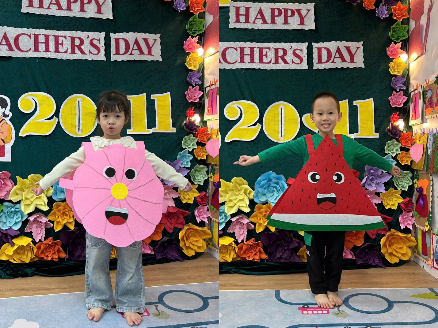 Sân khấu dường như sáng bừng lên khi những “thiên thần nhỏ” xuất hiện trong trang phục rực rỡ. Bài múa “Món quà tặng cô” không chỉ đẹp mắt về mặt hình thể mà còn chứa đựng niềm yêu thương dành cho giáo viên – những người đã luôn đồng hành cùng các con suốt năm học.