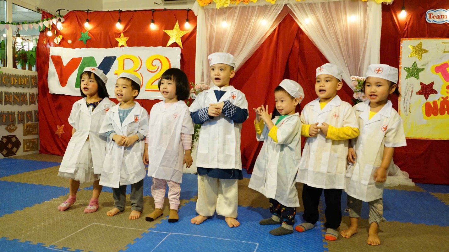 Những giọng đọc ngây thơ, trong trẻo của các bé với bài thơ “Làm bác sĩ”, các con hóa thân thành những “thiên thần áo trắng” nhỏ bé, thể hiện ước mơ được chăm sóc và giúp đỡ mọi người.