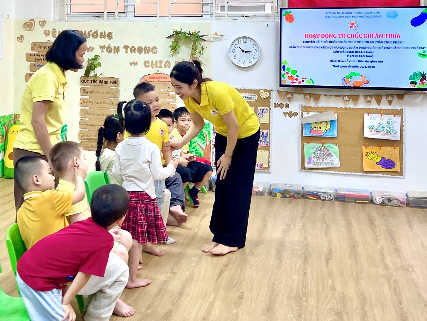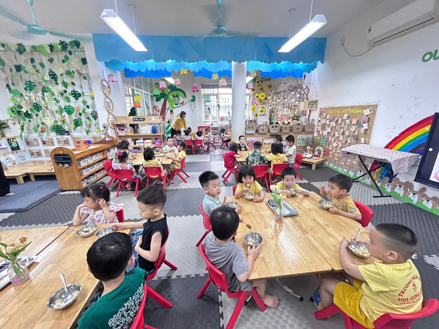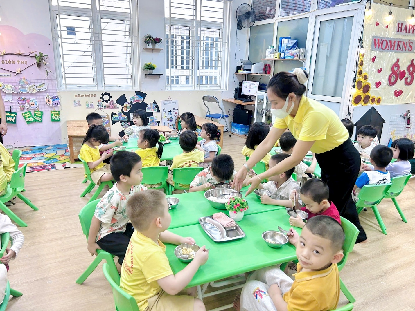 Trong bữa ăn, các bé không chỉ thưởng thức những món ăn ngon, đầy đủ dinh dưỡng mà còn học được cách tự phục vụ, giữ gìn vệ sinh và đặc biệt là biết mời cô, mời bạn trước khi ăn. Nhiều bé đã thể hiện sự tiến bộ rõ rệt khi mạnh dạn hơn trong giao tiếp, biết nhường nhịn và giúp đỡ bạn bên cạnh.