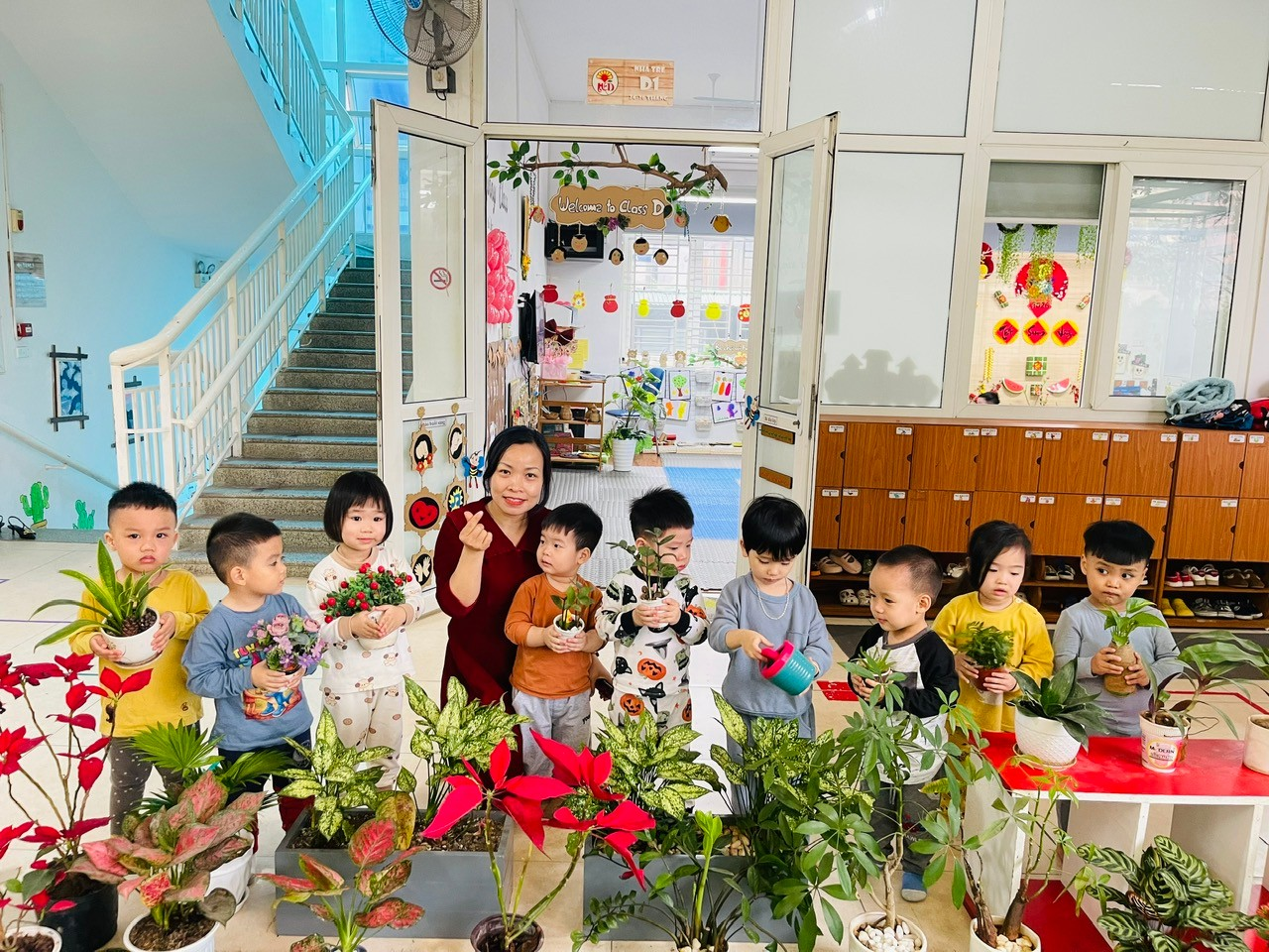 Mỗi độ xuân về, “Tết trồng cây đời đời nhớ ơn Bác Hồ” đã trở thành nét đẹp văn hóa giàu ý nghĩa đối với toàn dân tộc. Hưởng ứng phong trào đó, cô và trò lớp nhà trẻ D đã tổ chức hoạt động trồng cây, chăm sóc cây xanh trong khuôn viên trường với tinh thần vui tươi, hào hứng.