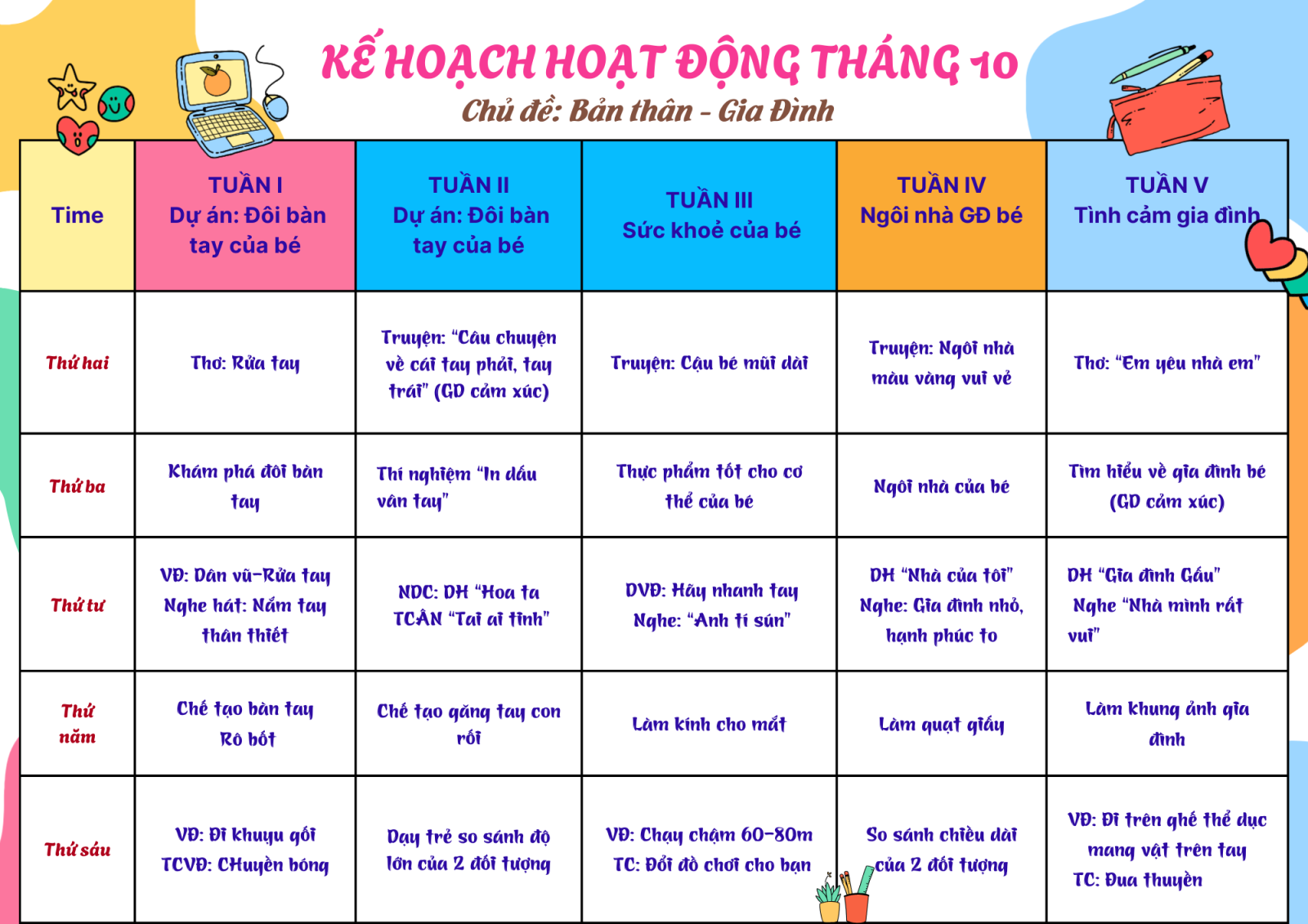 Kế hoạch hoạt động tháng 10 lớp Mẫu giáo nhỡ B2