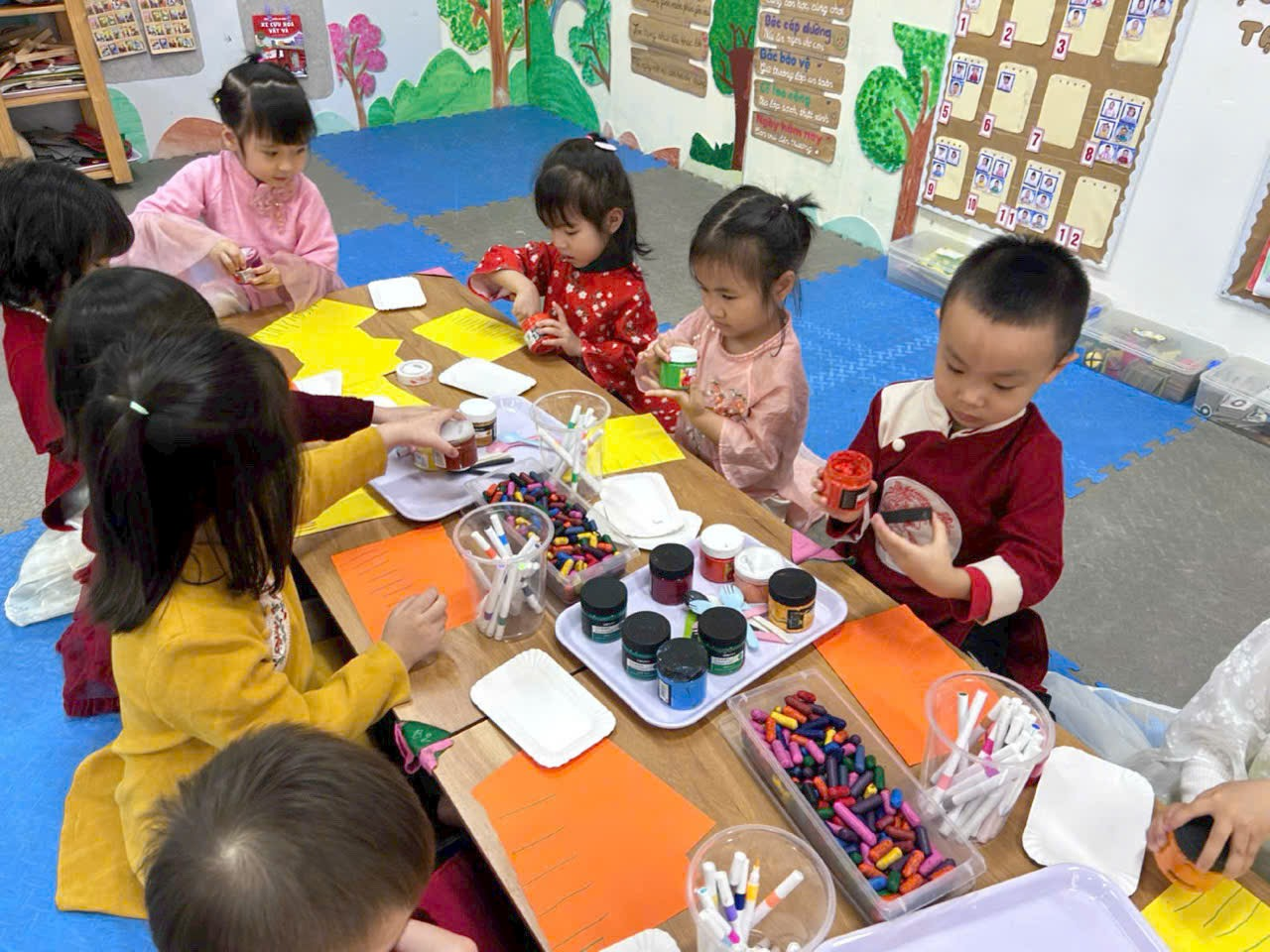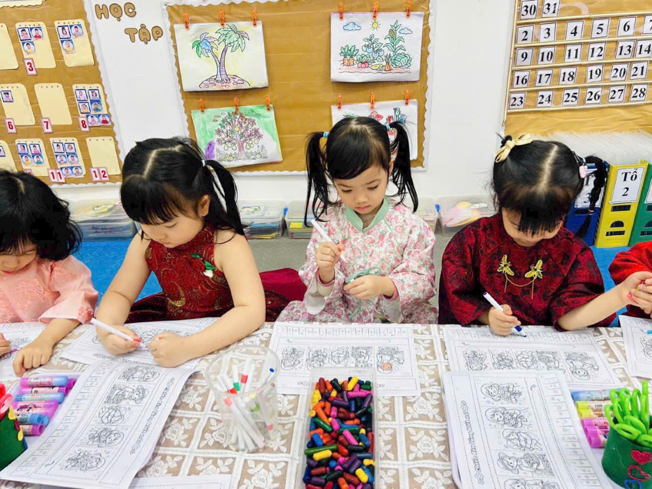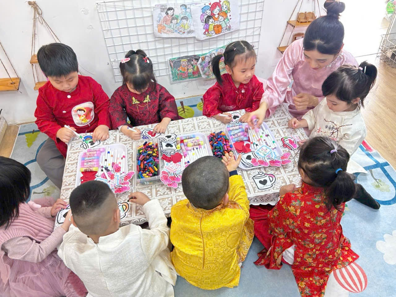 Không khí lớp học trở nên rộn ràng và ấm áp khi các bé hào hứng chia sẻ về mẹ, về cô giáo của mình. Mỗi sản phẩm tuy đơn giản nhưng chứa đựng tình yêu thương lớn lao, thể hiện sự quan tâm và sự trưởng thành trong cảm xúc của trẻ.