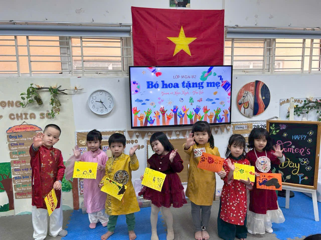 Chuỗi hoạt động chào mừng ngày 8/3 không chỉ mang đến niềm vui cho các con mà còn giúp trẻ học cách thể hiện tình cảm, biết yêu thương và trân trọng những người phụ nữ xung quanh mình. Đây cũng là một trong những hoạt động ý nghĩa góp phần giáo dục kỹ năng sống và bồi dưỡng những giá trị tốt đẹp cho trẻ ngay từ lứa tuổi mầm non.