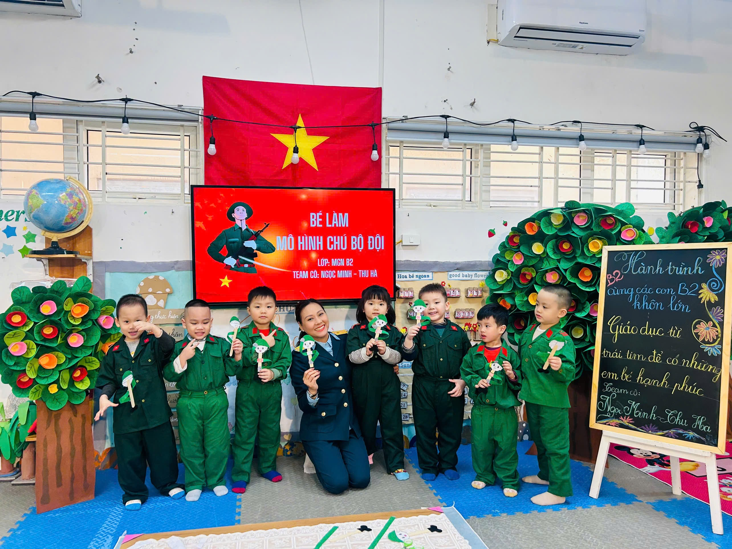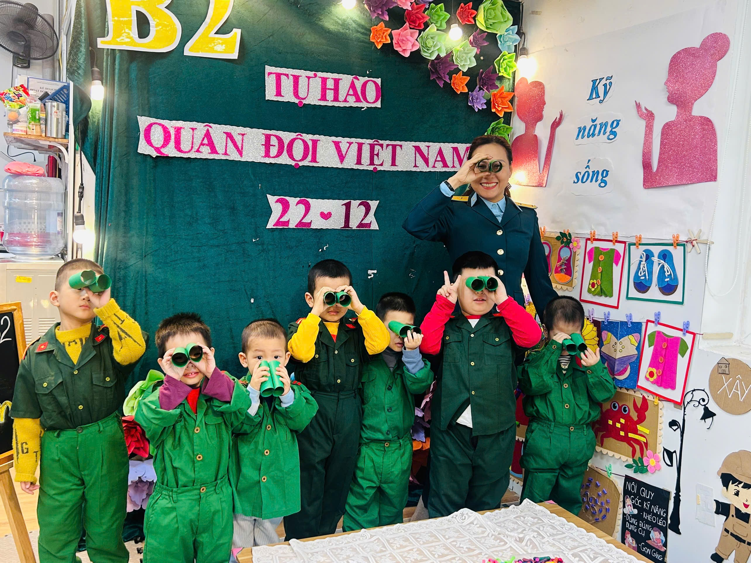 Hướng tới kỷ niệm Ngày thành lập Quân đội Nhân dân Việt Nam 22/12, lớp B2 đã tổ chức chuỗi hoạt động trải nghiệm ý nghĩa. Thông qua các hoạt động sáng tạo, các con được làm quen với hình ảnh chú bộ đội một cách gần gũi, vui tươi và đầy hứng thú.