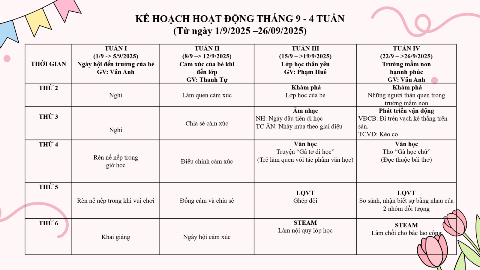 Kế hoạch giáo dục tháng 9 Lớp MGN B1
