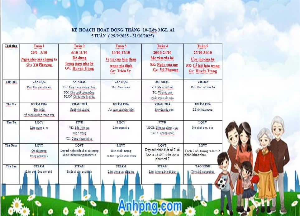 Kế hoạch giáo dục tháng 10 lớp MGB - C3
