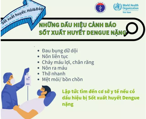 Khi tiến triển thành sốt xuất huyết Dengue nặng, giai đoạn nguy kịch diễn ra trong khoảng 3-7 ngày sau khi xuất hiện dấu hiệu đầu tiên của bệnh. Thân nhiệt sẽ giảm, điều này không có nghĩa là người bệnh đang hồi phục. Ngoài ra, cần đặc biệt chú ý tới các dấu hiệu cảnh báo dưới đây bởi vì đó có thể là dấu hiệu của sốt xuất huyết Dengue nặng.