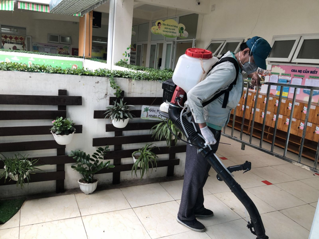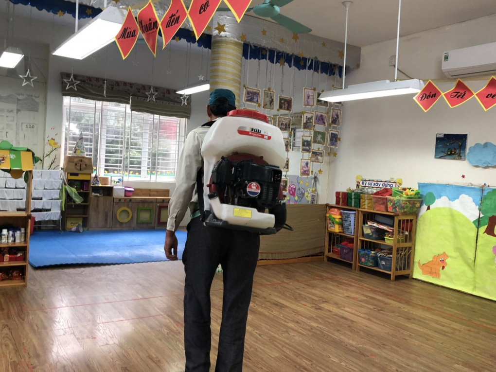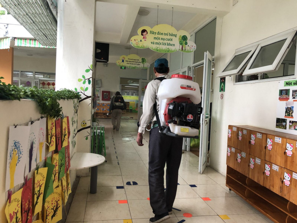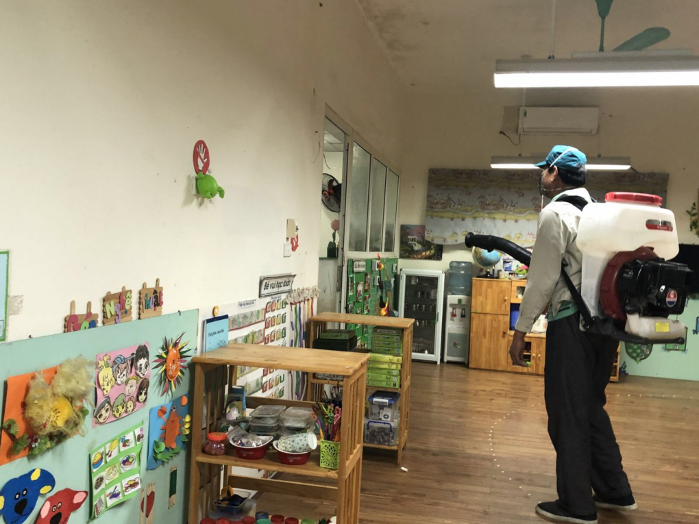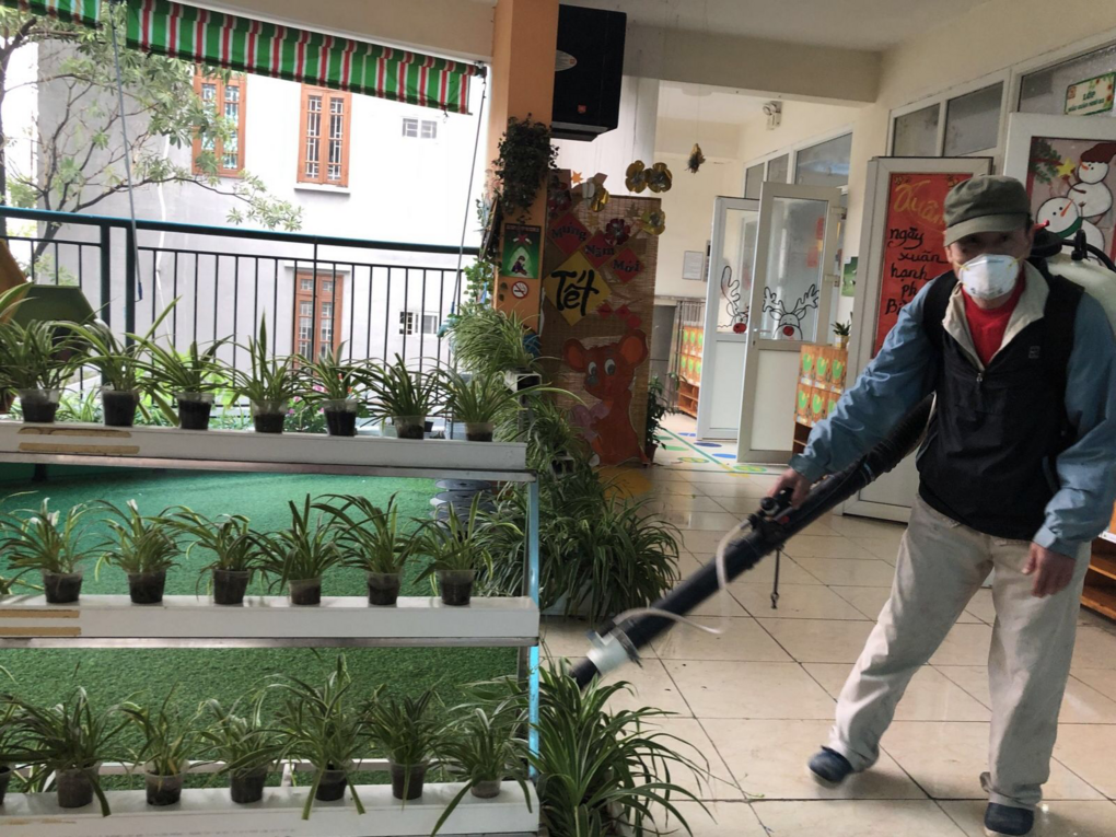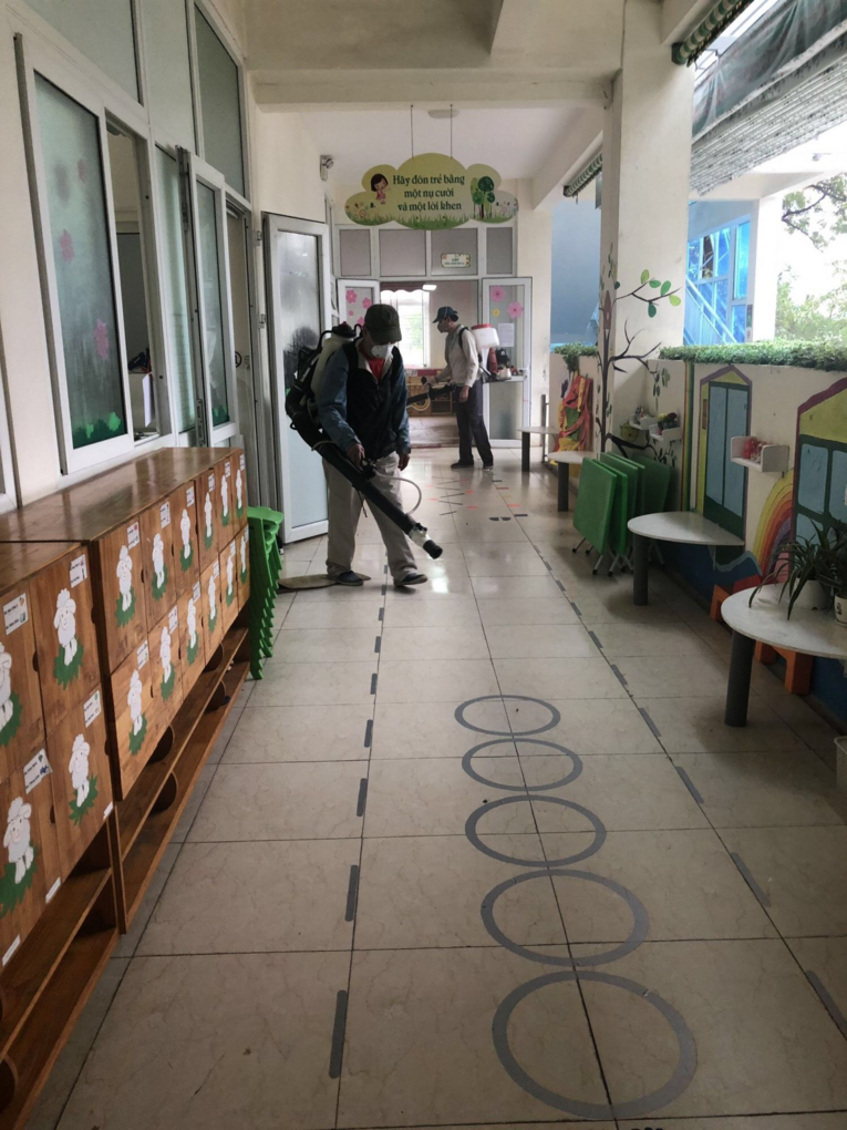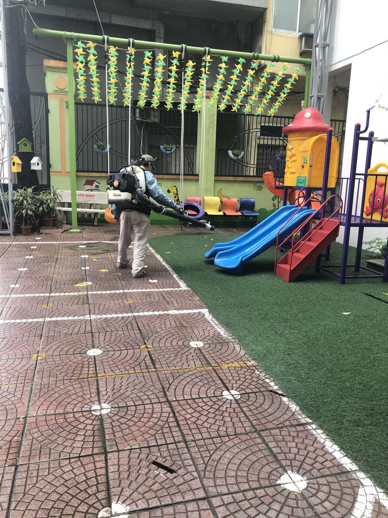 TRƯỜNG MN HHD PHUN THUỐC KHỬ KHUẨN TOÀN TRƯỜNG TRONG NHỮNG NGÀY CHỐNG DỊCH