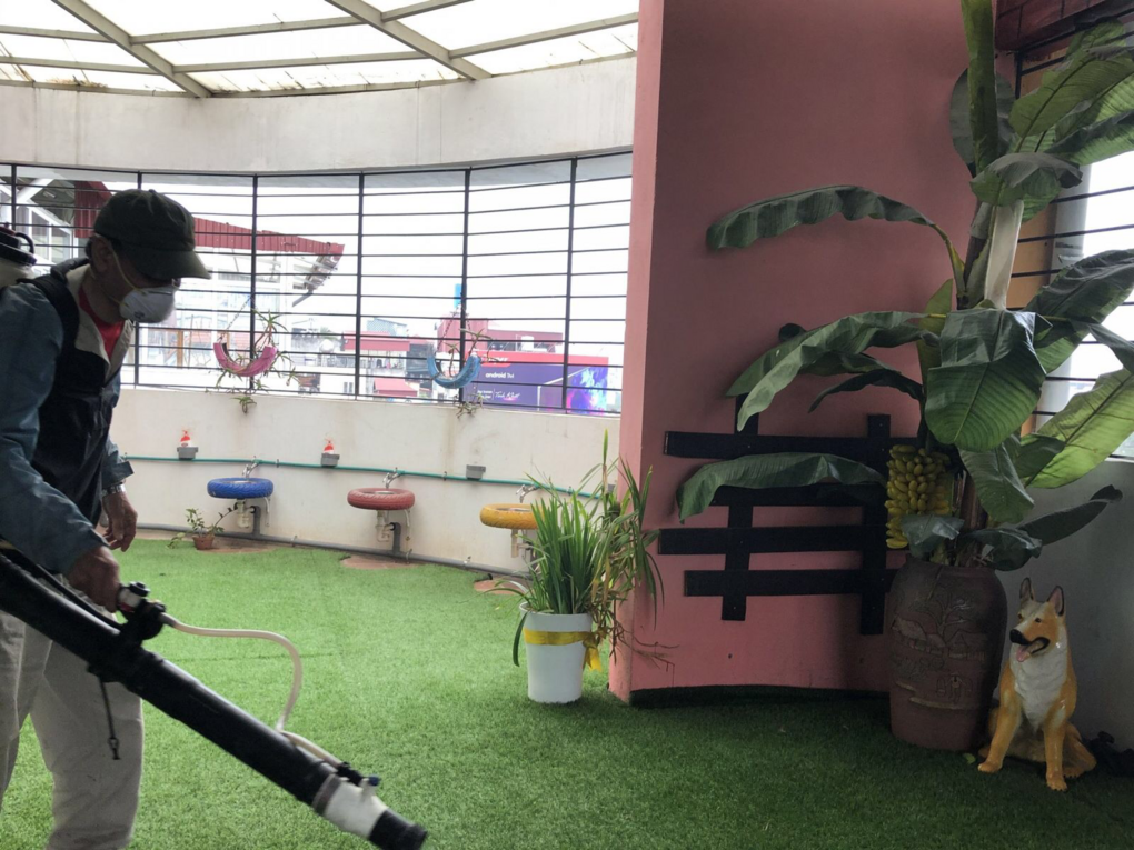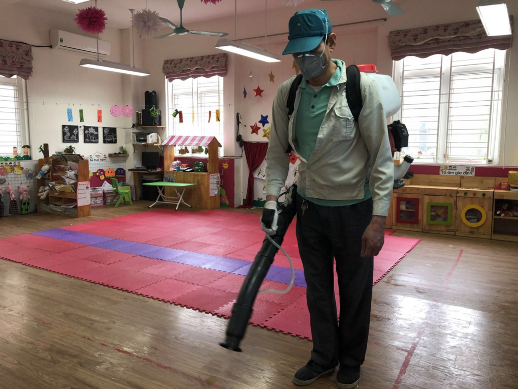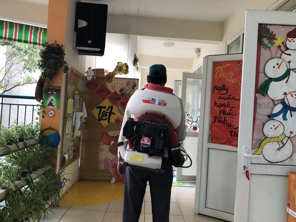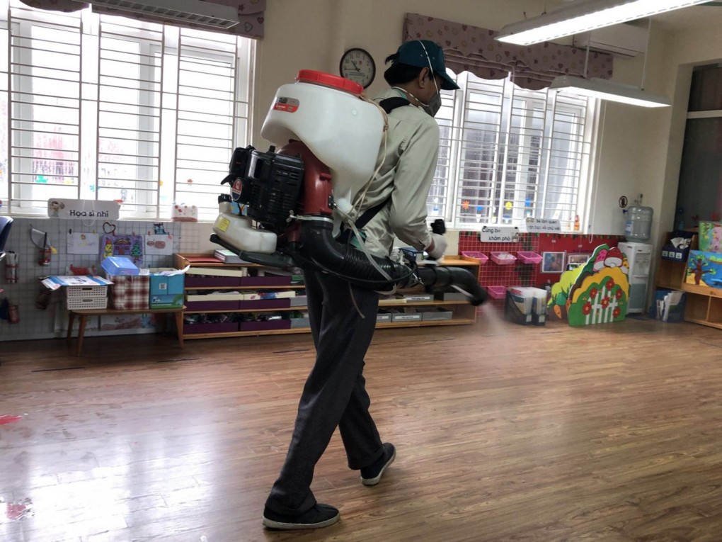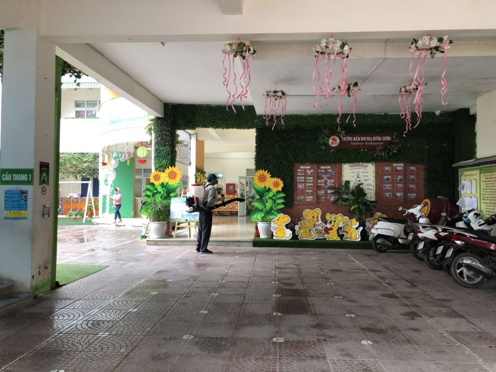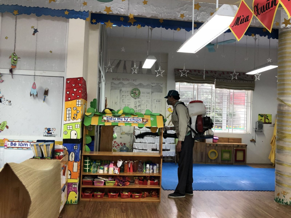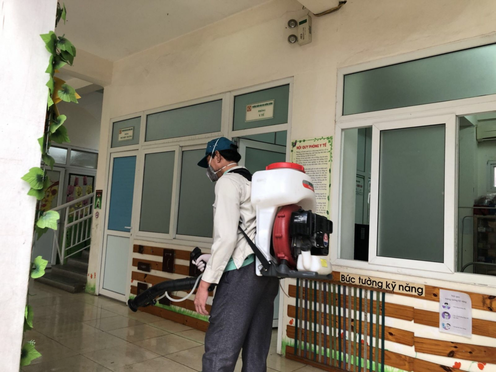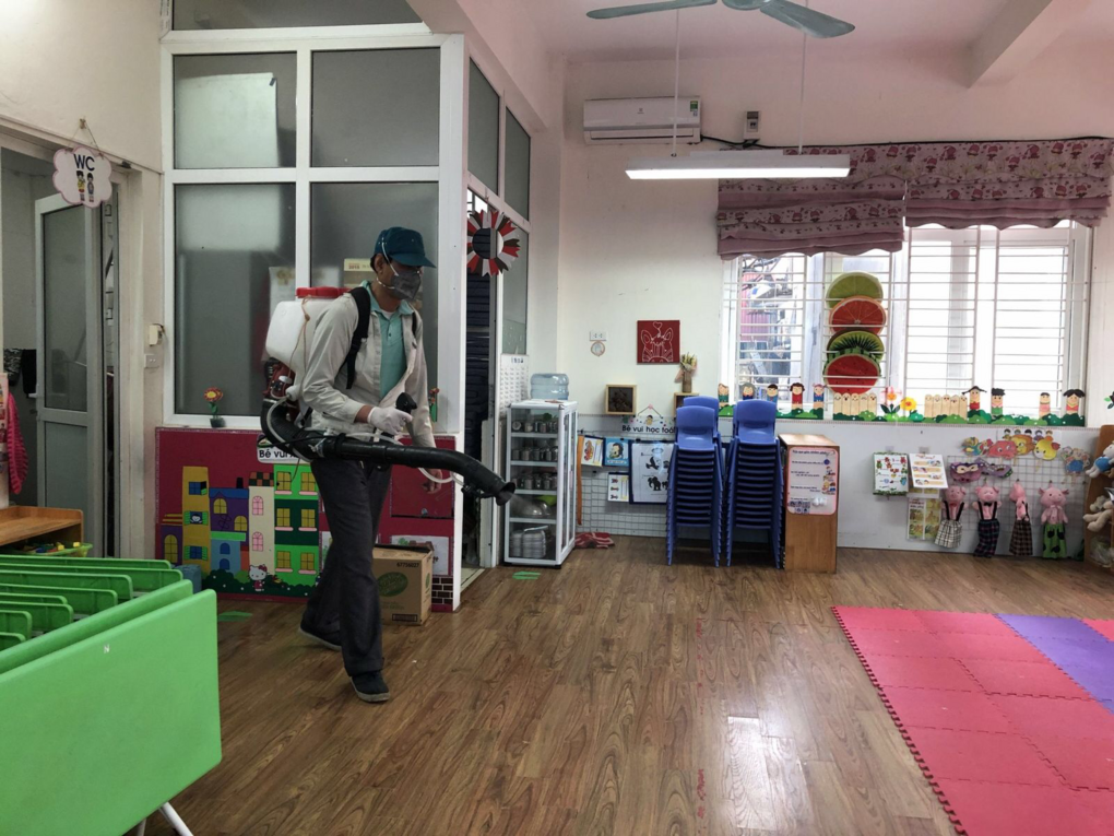 TRƯỜNG MN HHD PHUN THUỐC KHỬ KHUẨN TOÀN TRƯỜNG TRONG NHỮNG NGÀY CHỐNG DỊCH