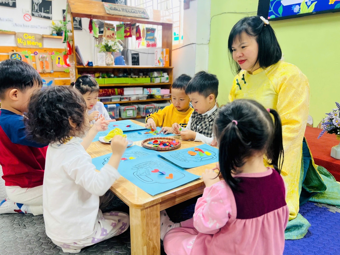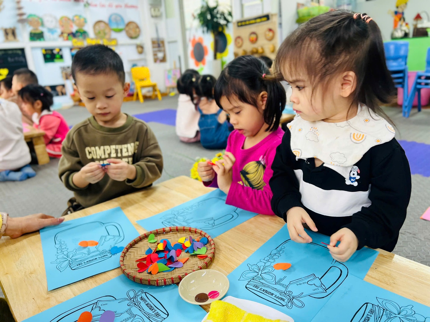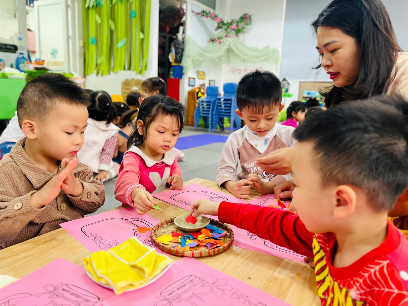 Hoạt động còn giúp trẻ phát triển nhiều kỹ năng quan trọng: vận động tinh, phối hợp tay–mắt, khả năng quan sát, thẩm mỹ, tư duy sáng tạo; đồng thời bồi dưỡng lòng biết ơn, sự quan tâm và cách thể hiện yêu thương bằng hành động cụ thể.