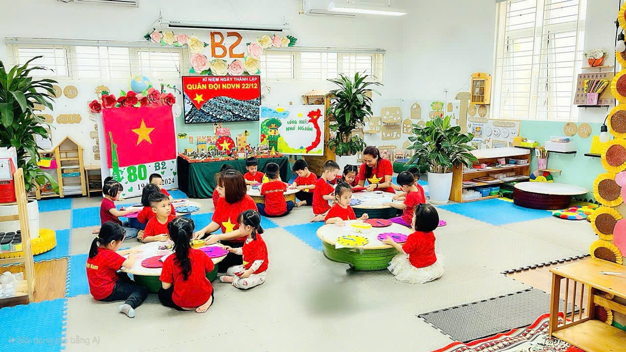 Các bạn nhỏ lớp Mẫu giáo nhỡ B2 hân hoan chào mừng kỷ niệm 80 năm Ngày thành lập Quân đội nhân dân Việt Nam 𝟐𝟐/𝟏𝟐/𝟏𝟗𝟒𝟒 - 𝟐𝟐/𝟏𝟐/𝟐𝟎𝟐𝟒