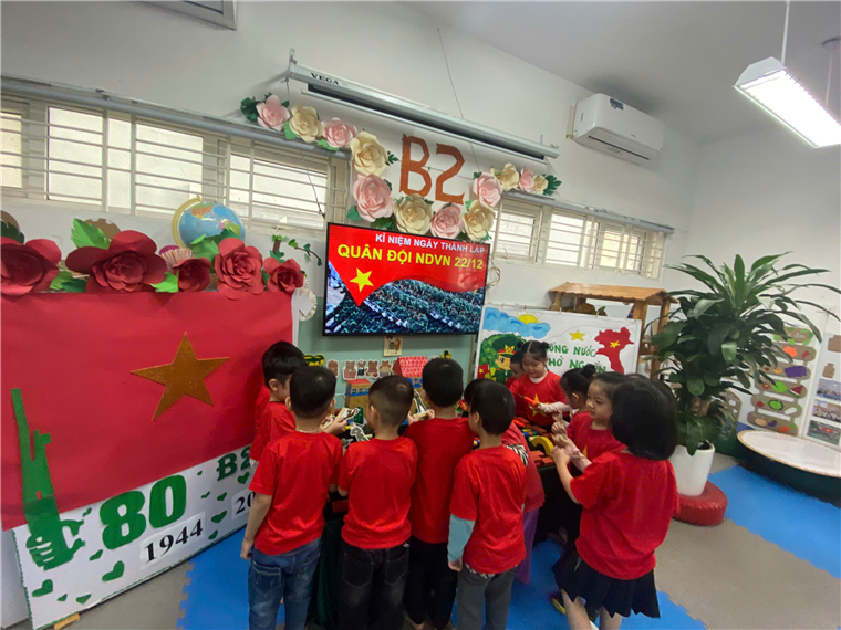 Mời các bậc phụ huynh cùng đón xem một số hình ảnh đáng yêu của các con lớp B2 nhân dịp kỷ niệm 80 năm Ngày Thành Lập Quân Đội Nhân Dân Việt Nam