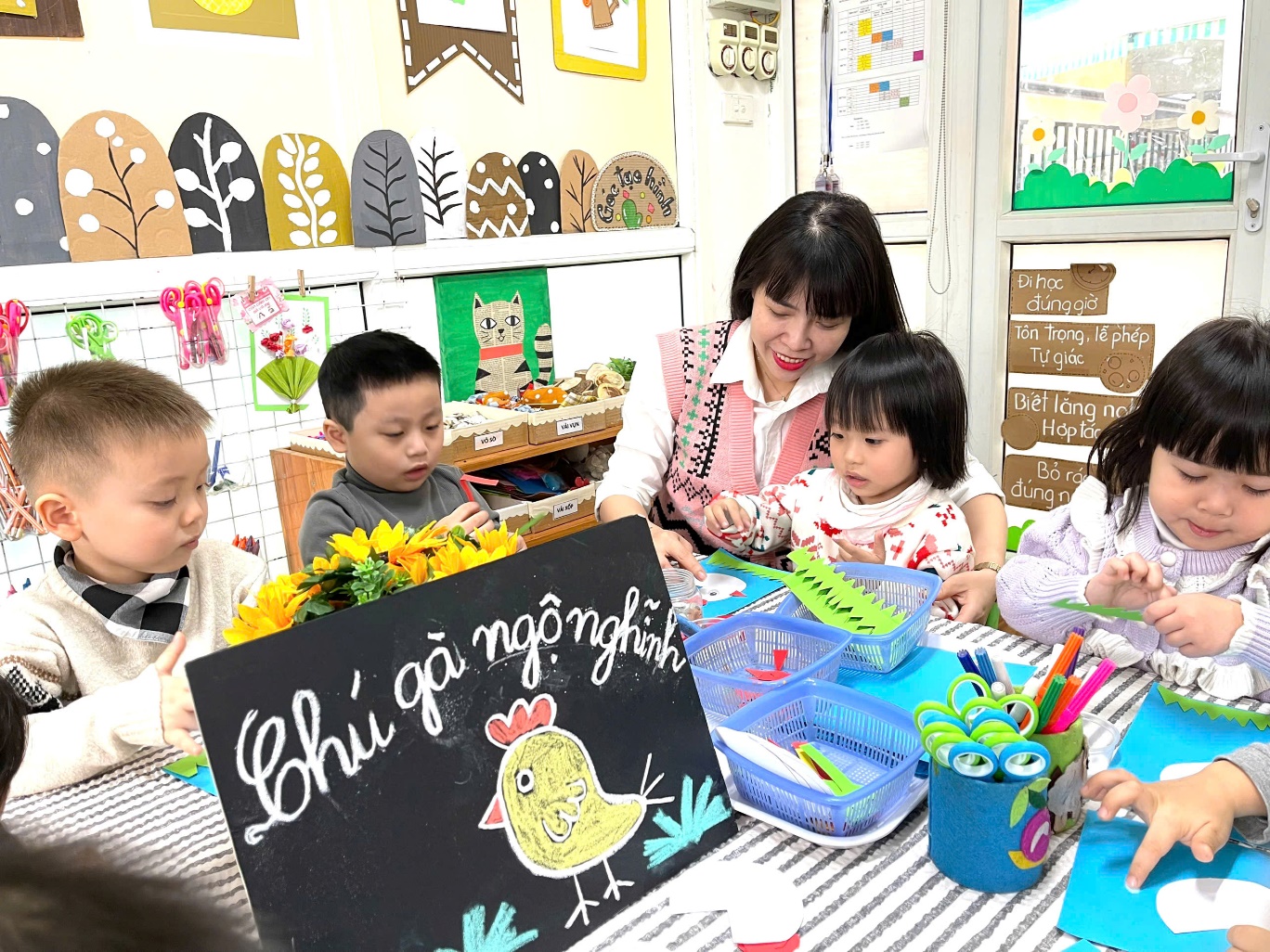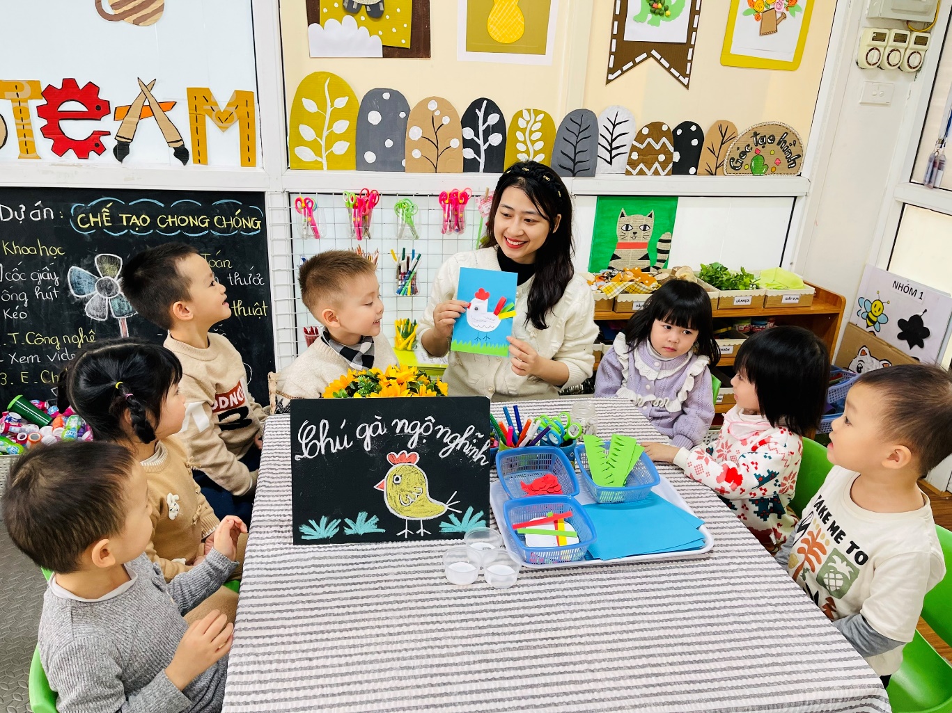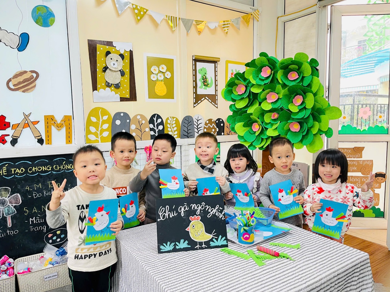 Cả lớp đã tràn ngập tiếng cười và niềm vui khi ngắm nhìn thành quả của mình. Đây cũng là dịp để các bé tự tin thể hiện bản thân và cảm nhận niềm vui từ việc hoàn thành một “tác phẩm nghệ thuật” do chính mình tạo ra.