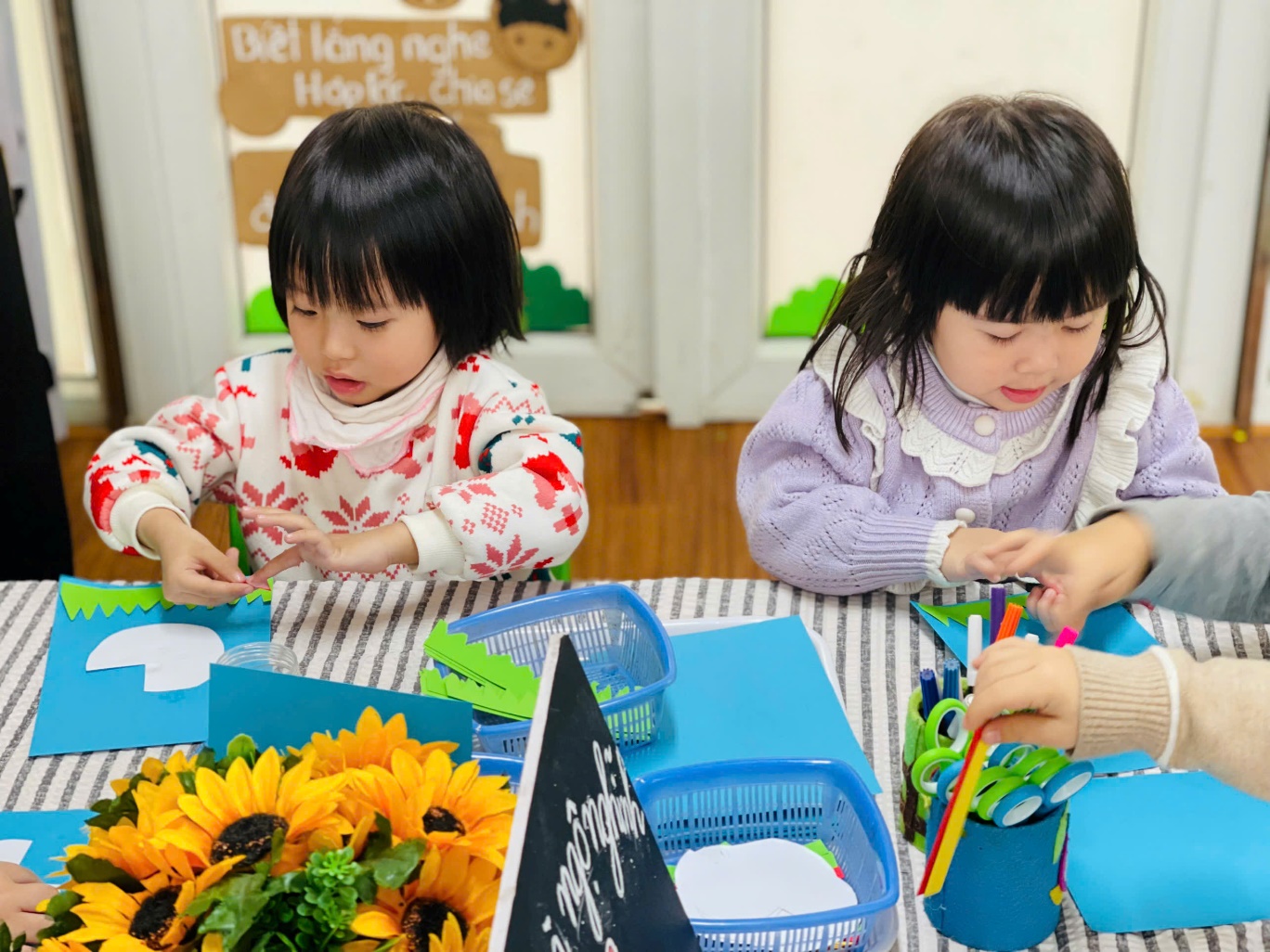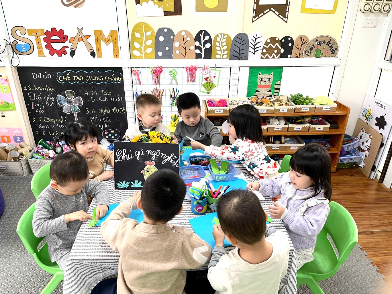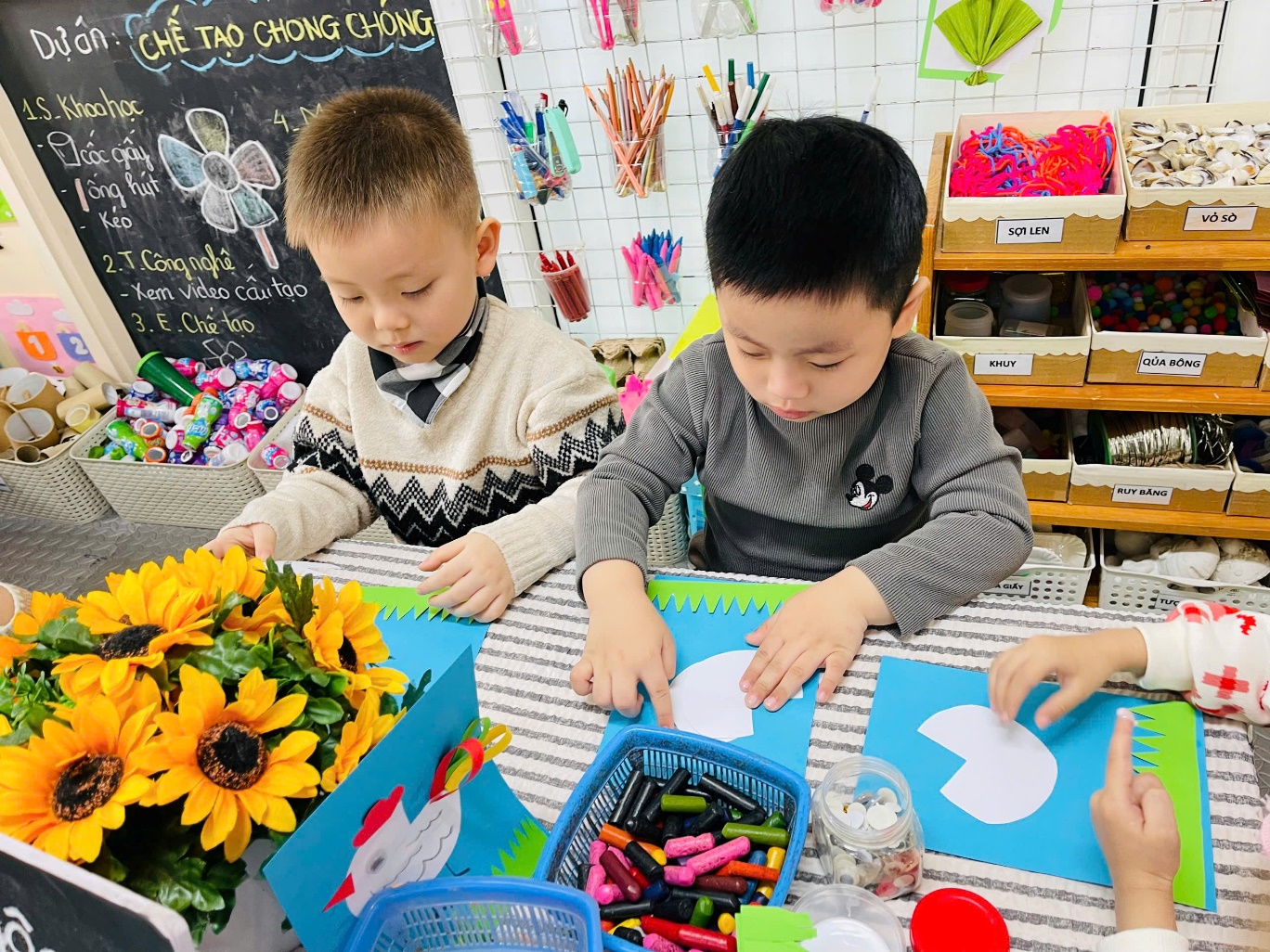 Cả lớp đã tràn ngập tiếng cười và niềm vui khi ngắm nhìn thành quả của mình. Đây cũng là dịp để các bé tự tin thể hiện bản thân và cảm nhận niềm vui từ việc hoàn thành một “tác phẩm nghệ thuật” do chính mình tạo ra.