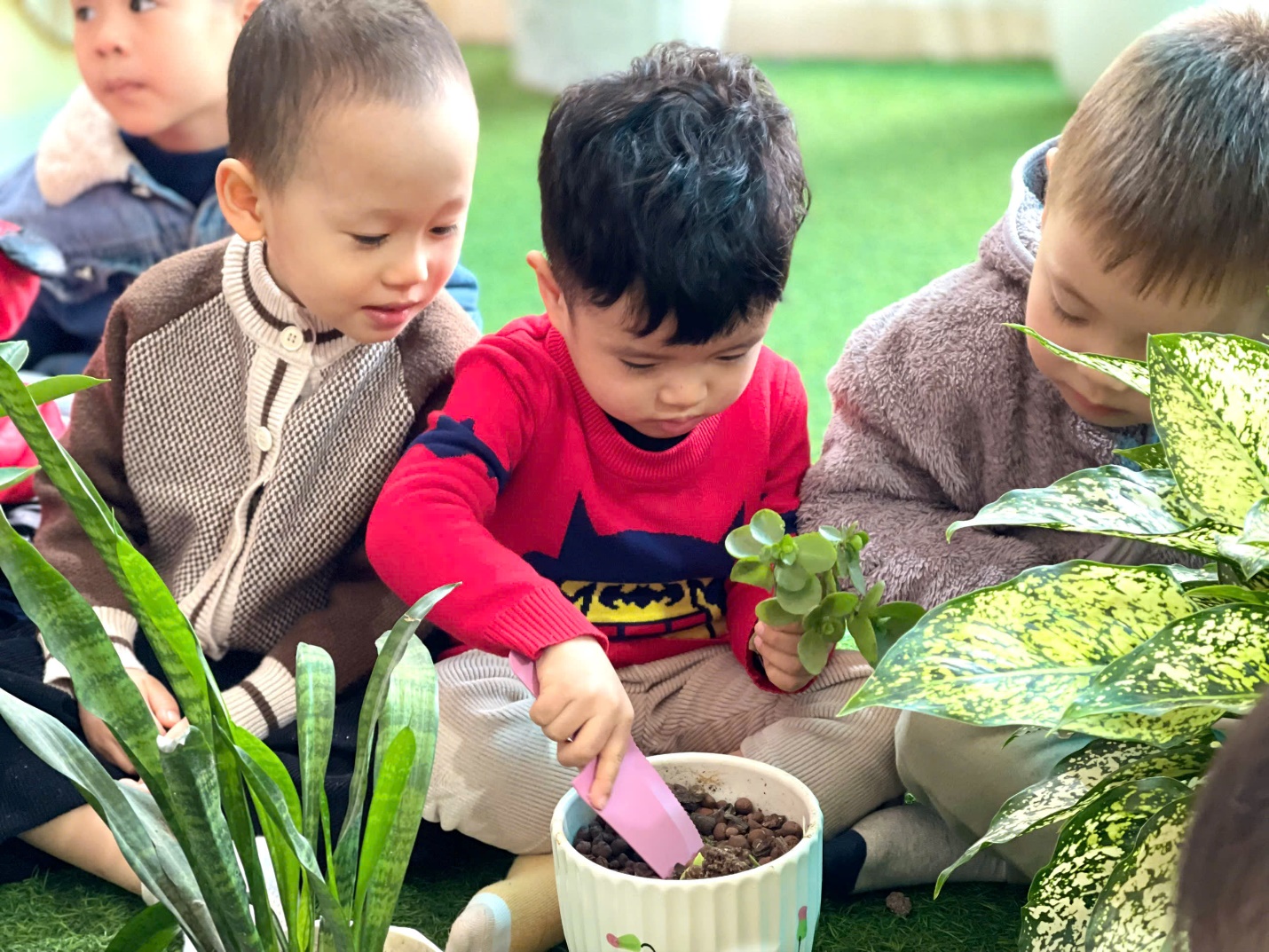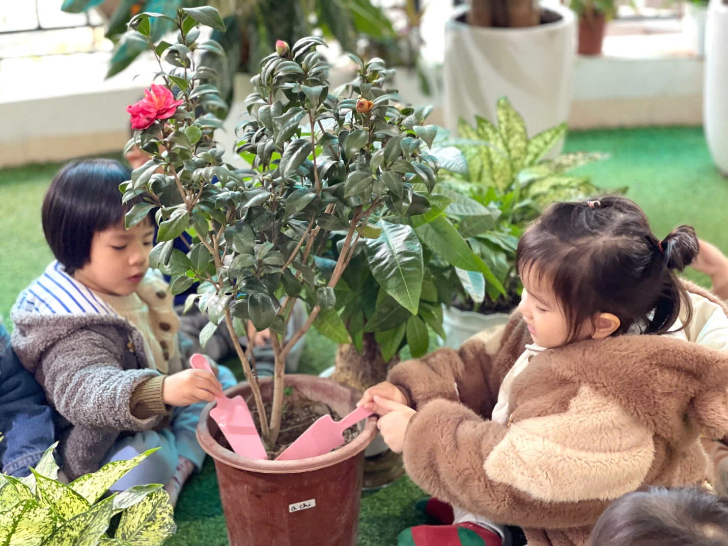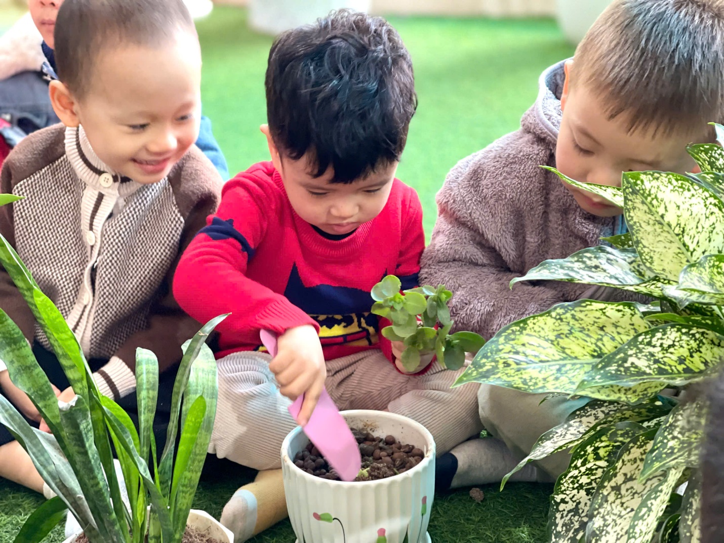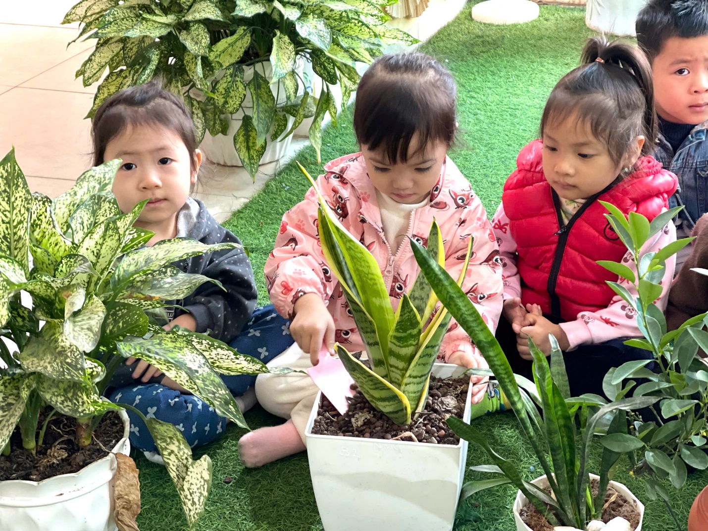 🌿 Bé tự tay trồng cây: Dưới sự hướng dẫn của cô giáo, các bé đã được tự tay xúc đất, đặt cây vào chậu, tưới nước và chăm sóc cây. Tuy còn nhỏ nhưng bé nào cũng rất háo hức và cẩn thận trong từng thao tác.