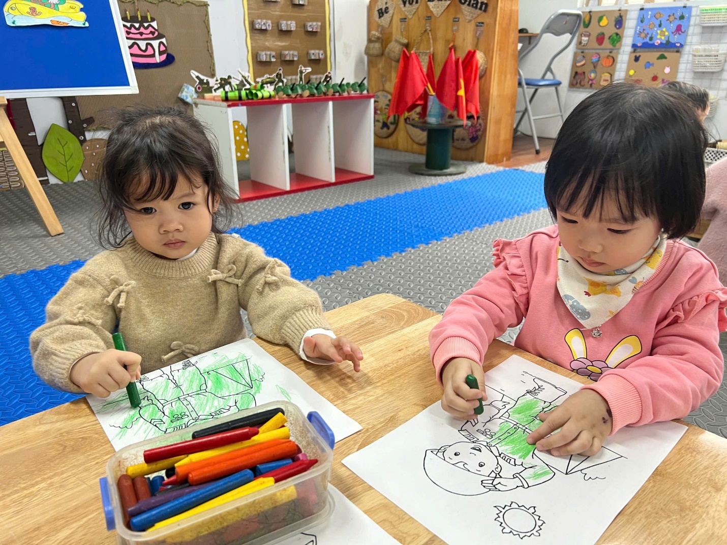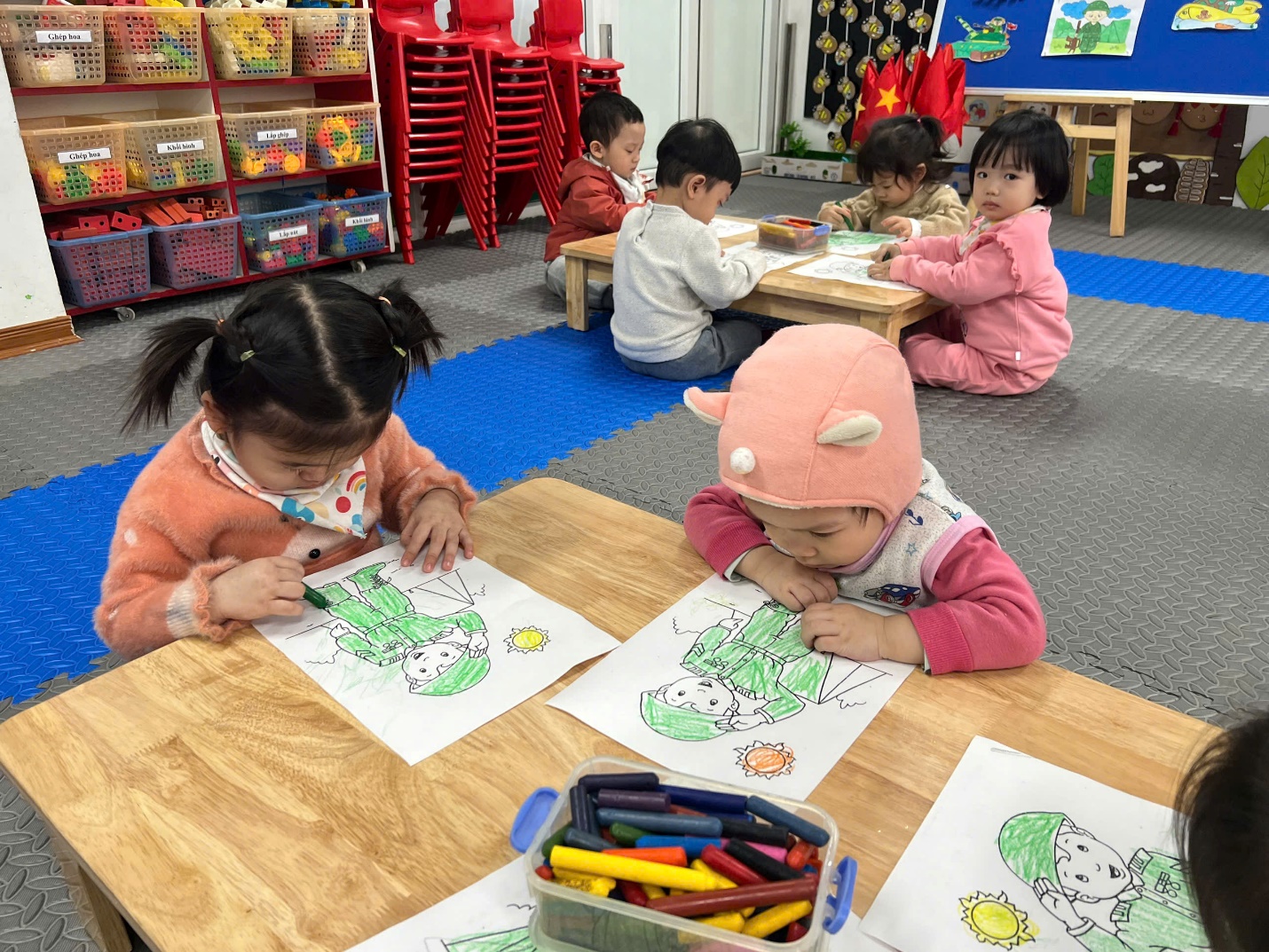 Sau khi được nghe cô giáo gợi ý, khuyến khích động viên, các bé đã hứng thú, say sưa tô màu tạo ra những bức tranh thật ngộ nghĩnh, đẹp mắt và vô cùng ý nghĩa tặng các chú bộ đội.