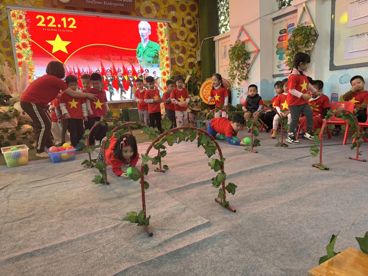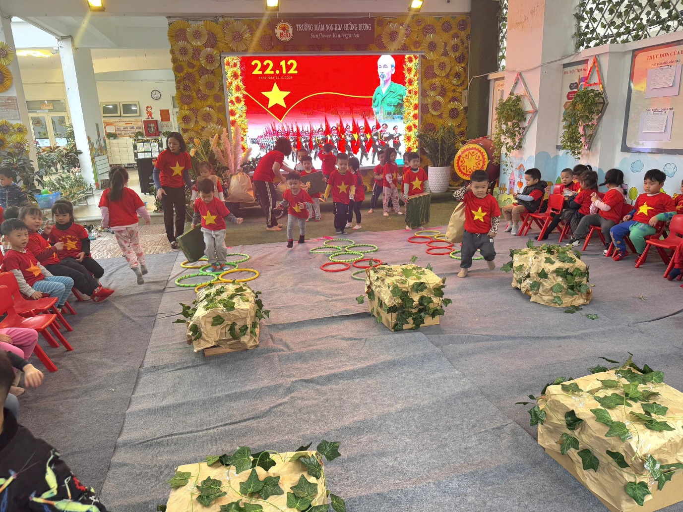 Hoạt động chào mừng ngày 22/12 của các bé khối mẫu giáo nhỡ trường mầm non Hoa Hướng Dương đã diễn ra thành công tốt đẹp, để lại nhiều ấn tượng sâu sắc trong lòng các bậc phụ huynh và khách mời. Đây là một hoạt động ý nghĩa, góp phần giáo dục truyền thống yêu nước cho thế hệ mầm non.
