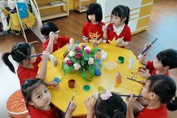 Hoạt động nghệ thuật tại trường mầm non đã có đầy đủ đồ dùng các nguyên vật liệu để trẻ tự do sáng tạo . Việc cho trẻ được hoạt động tại phòng nghệ thuật để tạo hứng thú cho trẻ bởi trong phòng nghệ thuật có rất nhiều các đồ dùng, các nguyên vật liệu để trẻ tự do sáng tạo theo ý thích. giúp trẻ có cảm xúc lành mạnh, vui tươi để từ đó hình thành những cảm nhận tích cực về cái đẹp. Trong phòng nghệ thuật đó có môi trường xung quanh cũng rất nghệ thuật, có những bức tranh, sản phẩm nghệ thuật mà trẻ đã tạo ra,