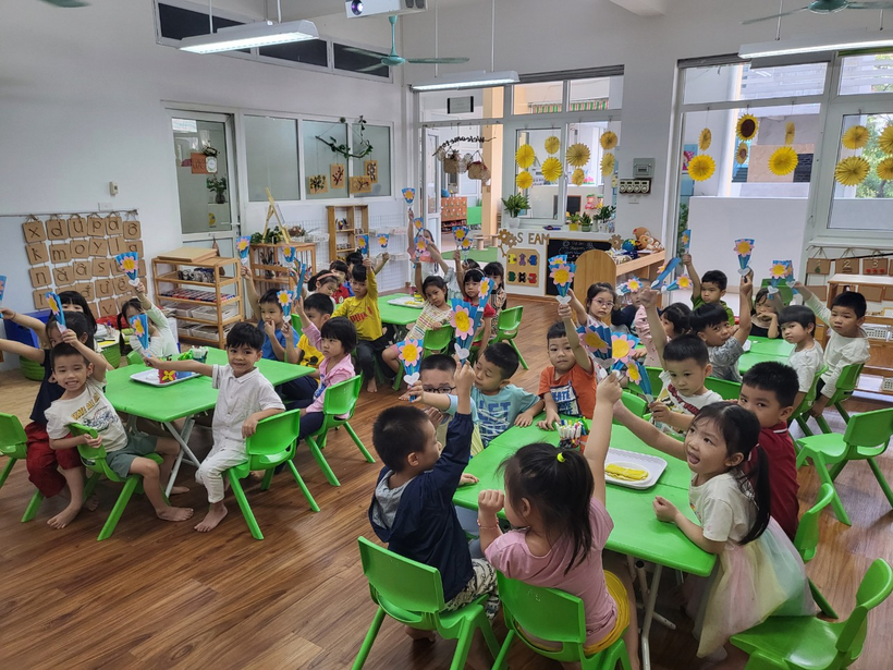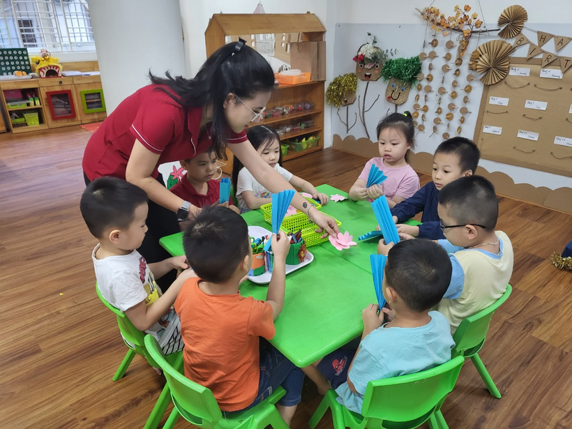 Dưới sự hướng dẫn của cô giáo, các con tham gia rất hào hứng.