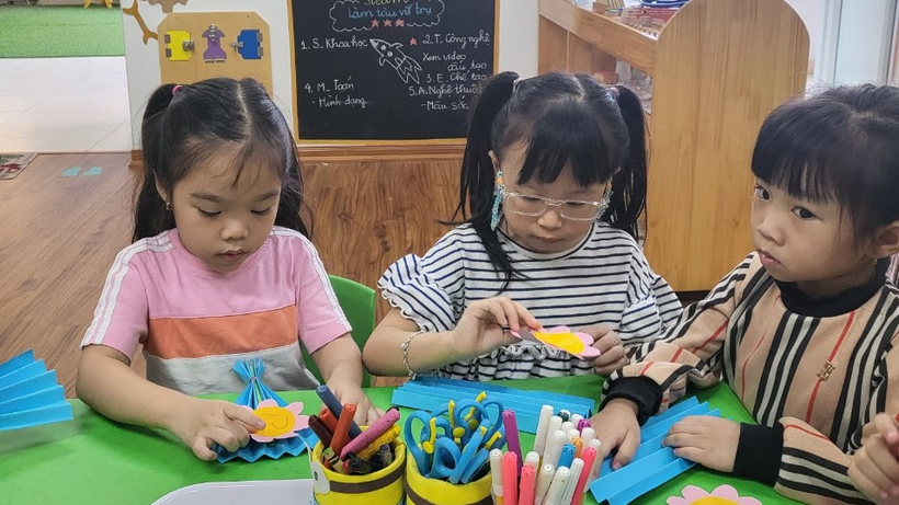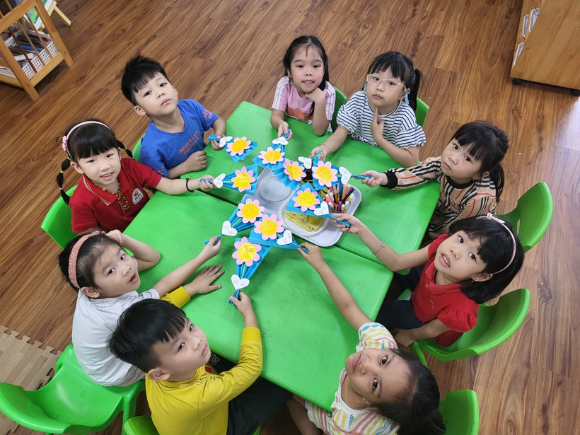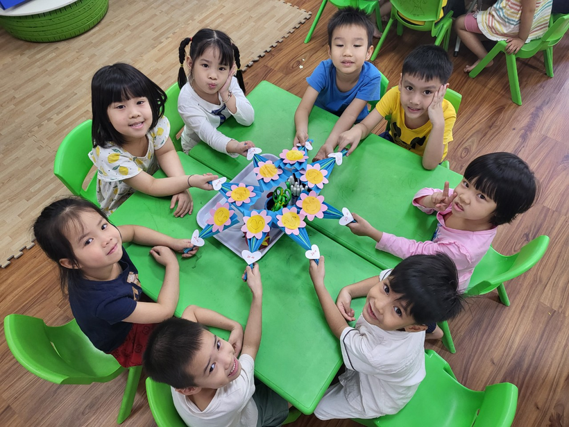 Các con rất háo hức khi được tự tay làm những bông hoa thật xinh xắn!