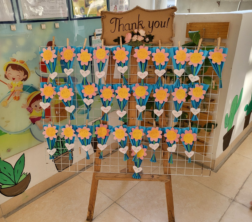 Dưới đây là một số hình ảnh trong buổi trải nghiệm: Làm bó hoa tặng bà, tặng mẹ của các bé lớp MGL A3: