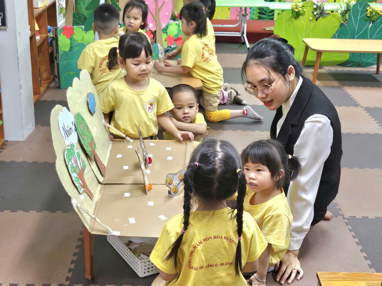 Điều làm các cô vui nhất là khi trẻ được gợi mở để sáng tạo tình tiết. Mỗi bạn đưa ra một ý tưởng khác nhau. Những câu trả lời hồn nhiên nhưng thông minh ấy khiến cả lớp bật cười thích thú. Không khí lớp học trở nên sôi nổi, tự nhiên đến mức tôi quên mất là mình đang trong giờ hội giảng.