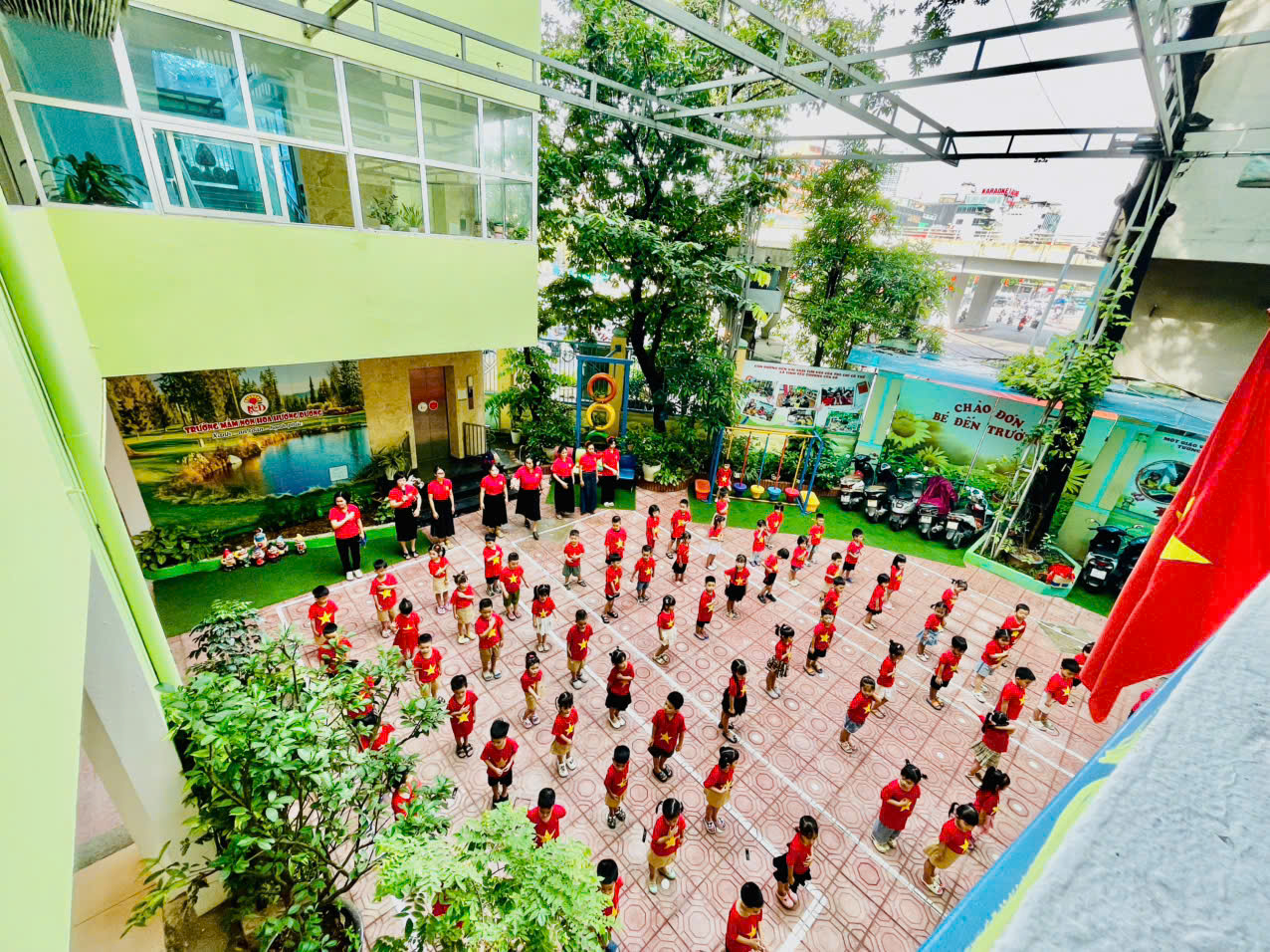 Trong không khí hào hùng của những ngày mùa thu lịch sử, các bé lớp C1 đã cùng nhau tham gia hoạt động chào mừng Quốc khánh. Dưới lá cờ đỏ sao vàng tung bay, các con đồng thanh hát Quốc ca, hưởng ứng tinh thần tự hào dân tộc trên nền nhạc hào hùng