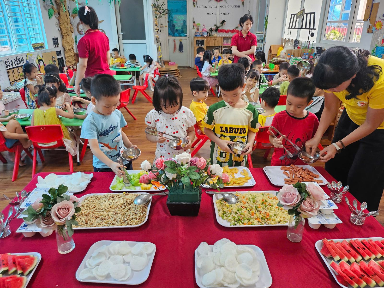Buổi tiệc buffet không chỉ là niềm vui của các bé mà còn là nguồn động lực để các cô tiếp tục sáng tạo, đổi mới các hoạt động dạy học, giúp trẻ học qua chơi, học trong tình yêu thương và sự trải nghiệm thực tế.